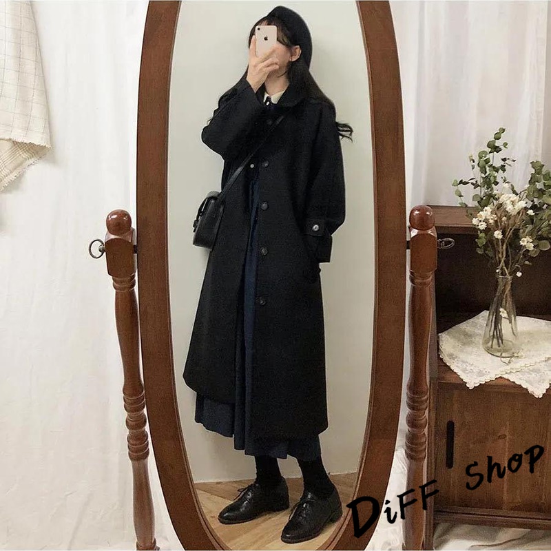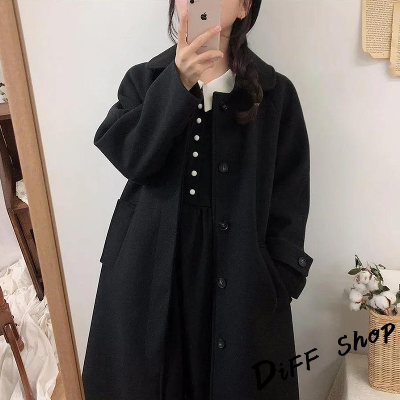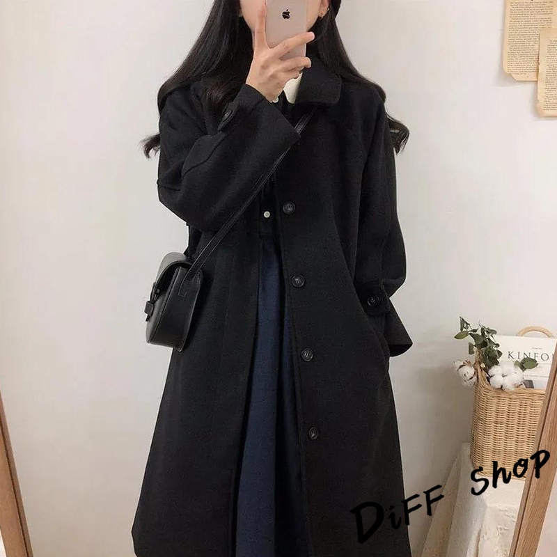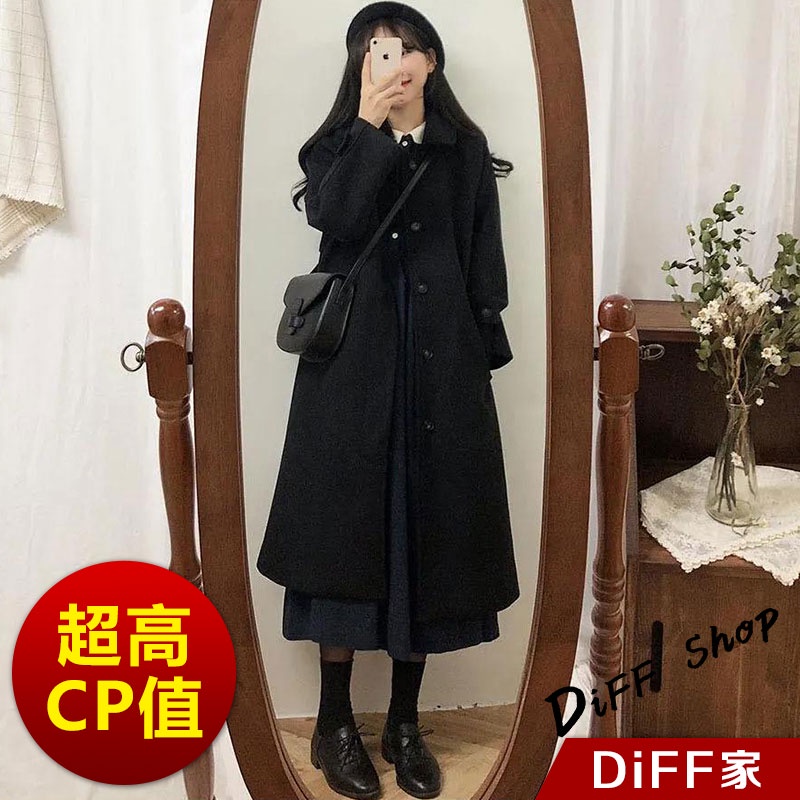 【DIFF】韓版英倫風長版黑色大衣 外套 風衣 百搭外套 上衣 女裝 衣服 長袖上衣 長版外套 【J181】