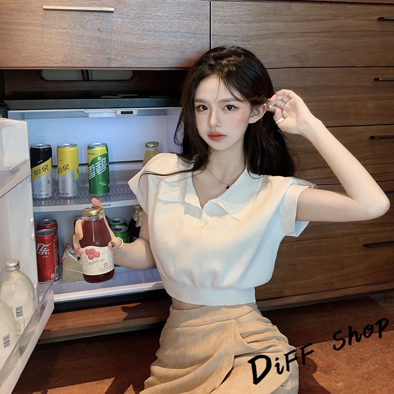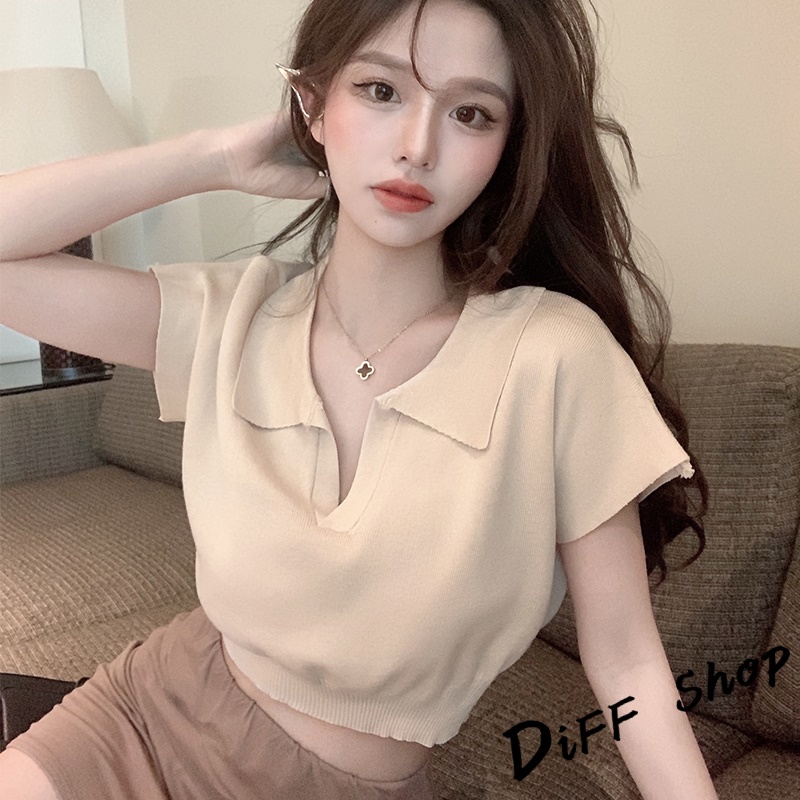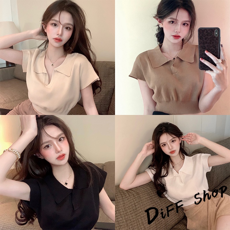 【DIFF】韓版簡約翻領休閒百搭短版上衣 短袖上衣 短袖t恤 女裝 顯瘦上衣 衣服 襯衫 素T 短板上衣【T391】