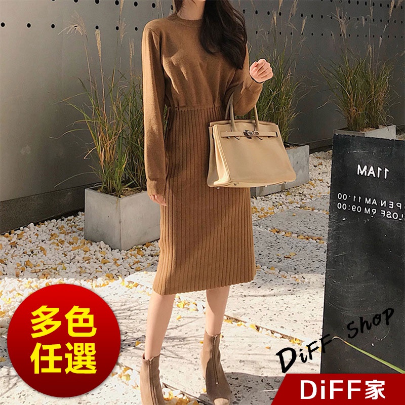 【DIFF】韓版復古色系針織洋裝 連衣裙 套裝 長裙子 毛衣 長袖上衣 女裝 衣服 寬鬆上衣 顯瘦上衣 冬裝【S159】