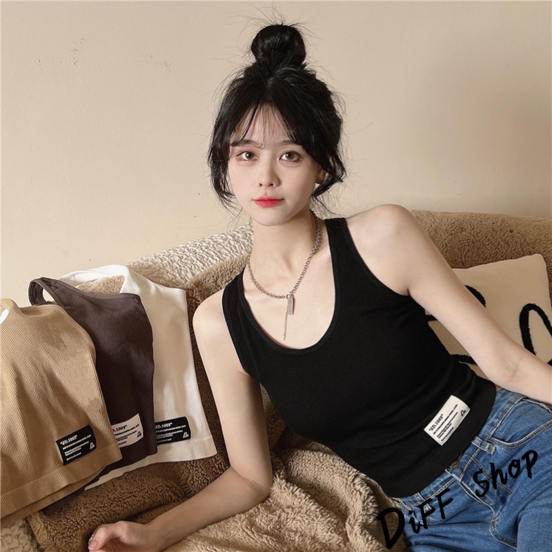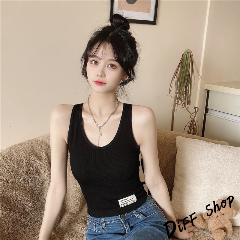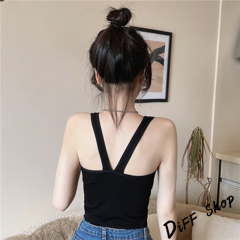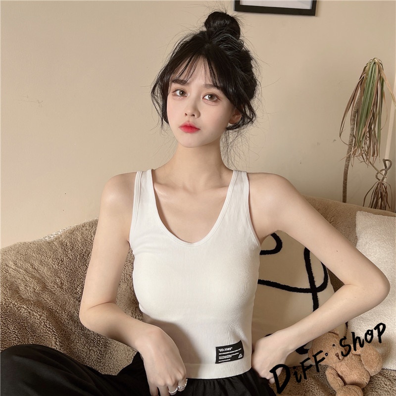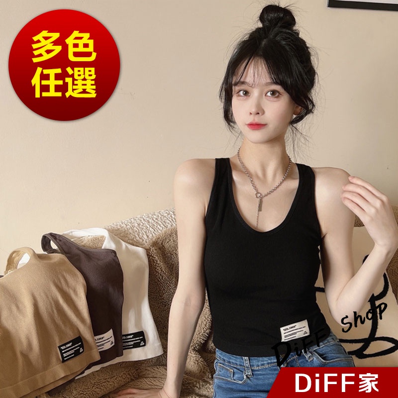 【DIFF】韓版內搭針織背心 帶胸墊 運動背心 上衣 小可愛 女裝 背心女 衣服 短版上衣 冰絲背心 無鋼圈【V175】