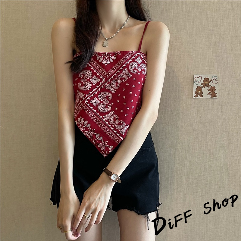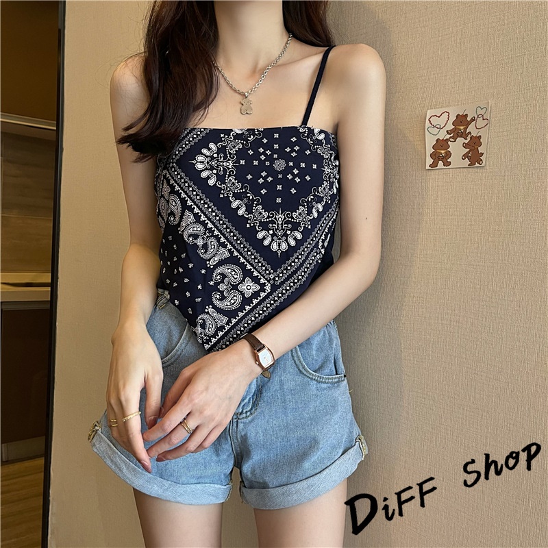 【DIFF】韓版夏季復古絲巾不規則吊帶背心 上衣 小可愛 女裝 背心女 衣服 短版上衣 冰絲背心【V180】