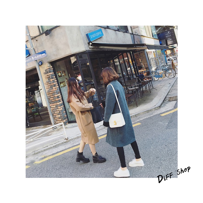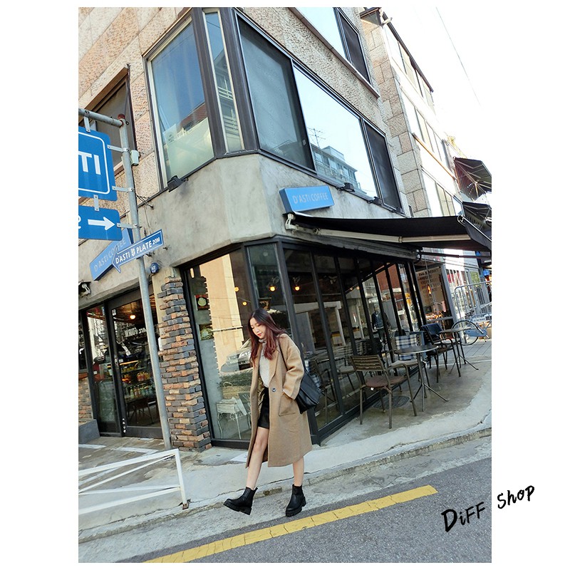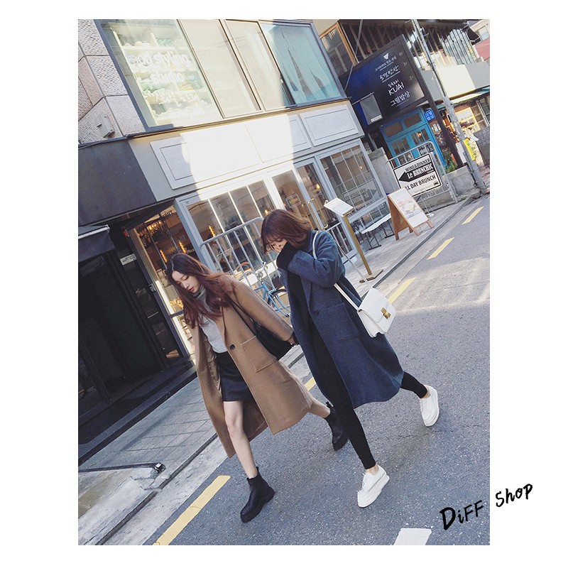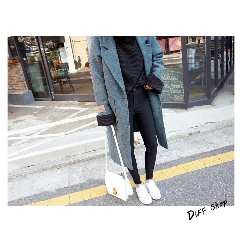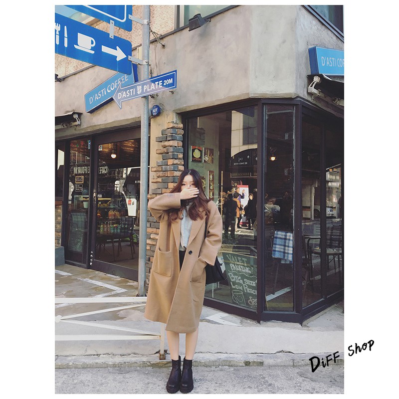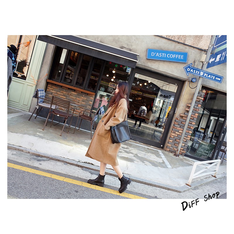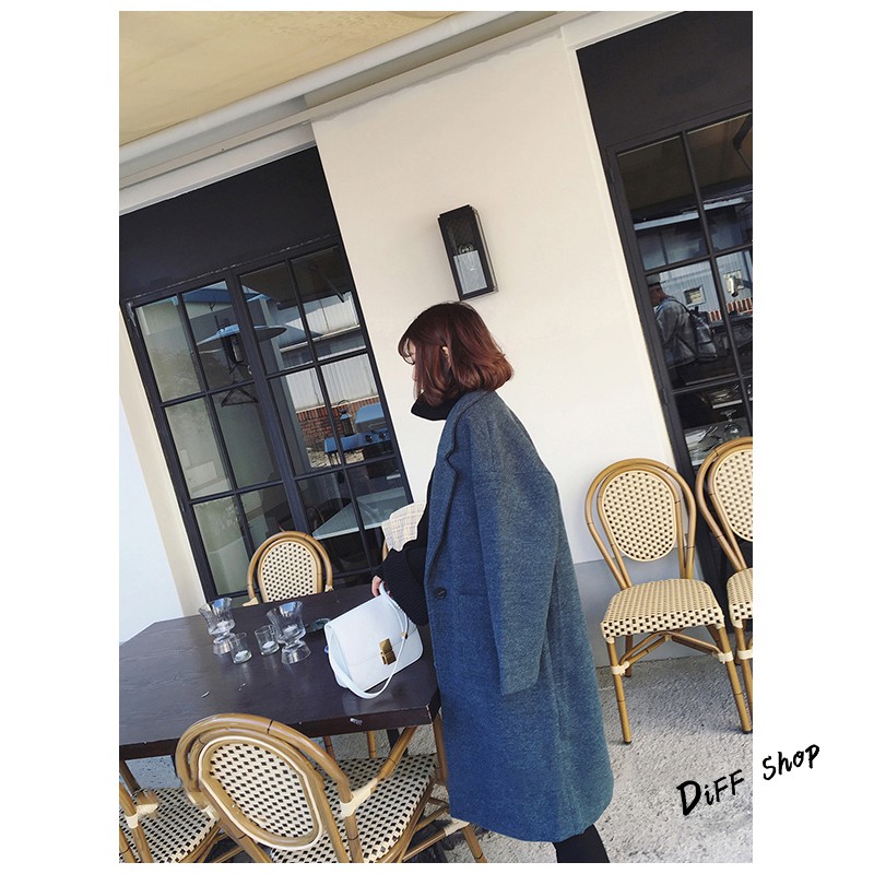 【DIFF】秋冬韓版寬鬆長版一顆扣大衣外套 百搭外套 長版外套 風衣 大衣 長袖 女裝【J62】