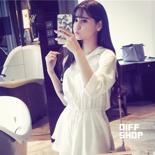 【售完不補】韓版甜美收腰顯瘦連衣裙 洋裝 套裝 襯衫 洋裝 長版上衣 襯衫 雪紡 長袖t恤 長袖上衣 【S15】
