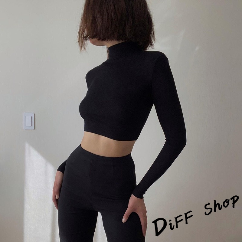 【DIFF】韓版半高領緊身內搭打底長袖上衣 短版上衣 長袖上衣 女裝 衣服 顯瘦上衣 長袖t恤 素T 素色【W268】