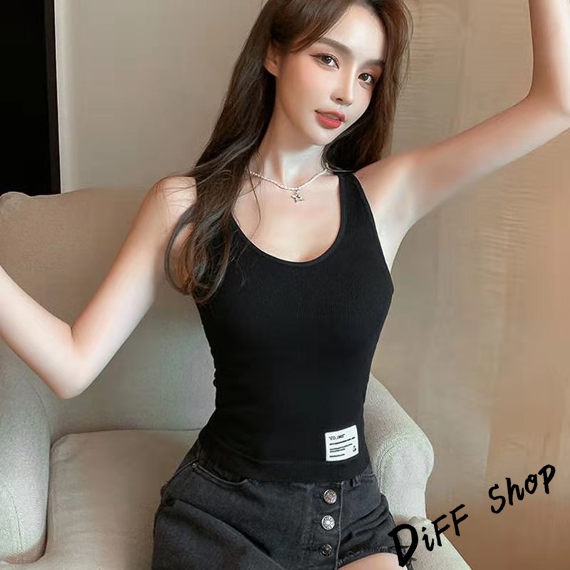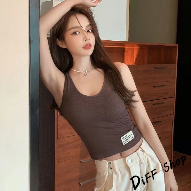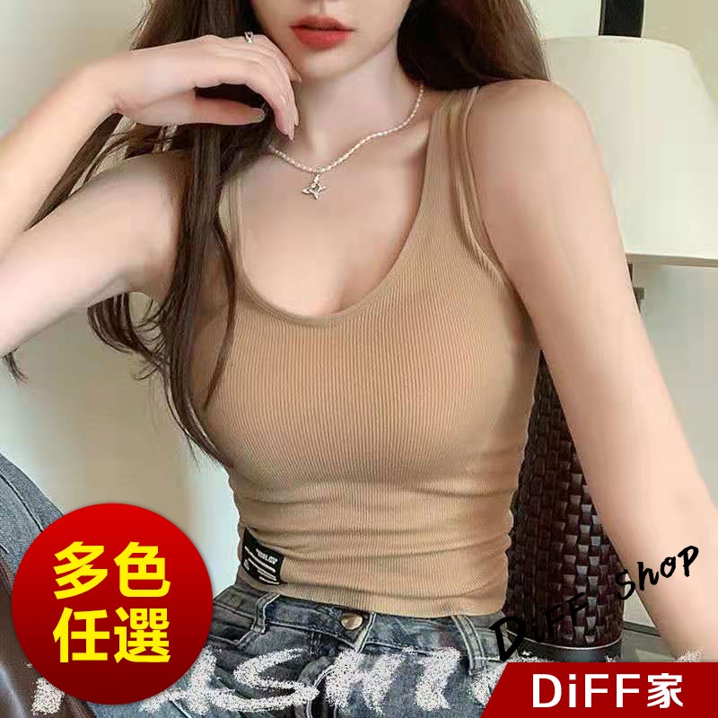【DIFF】韓版美背運動背心 帶胸墊 上衣 小可愛 女裝 背心女 衣服 短版上衣 冰絲背心 無痕內衣【V175】