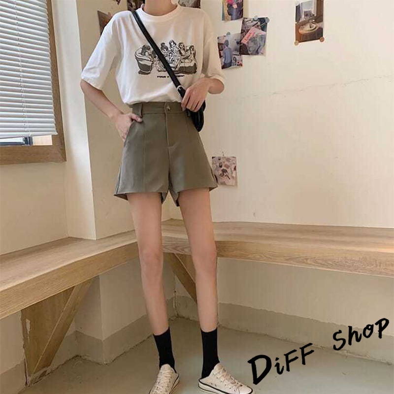 【DIFF】韓版寬鬆高腰顯瘦休閒西裝短褲 高腰短褲 休閒褲 短褲 褲子 西裝褲 女裝 休閒短褲 高腰褲【P197】
