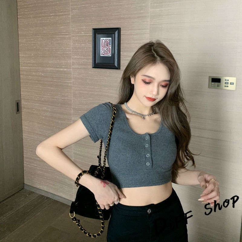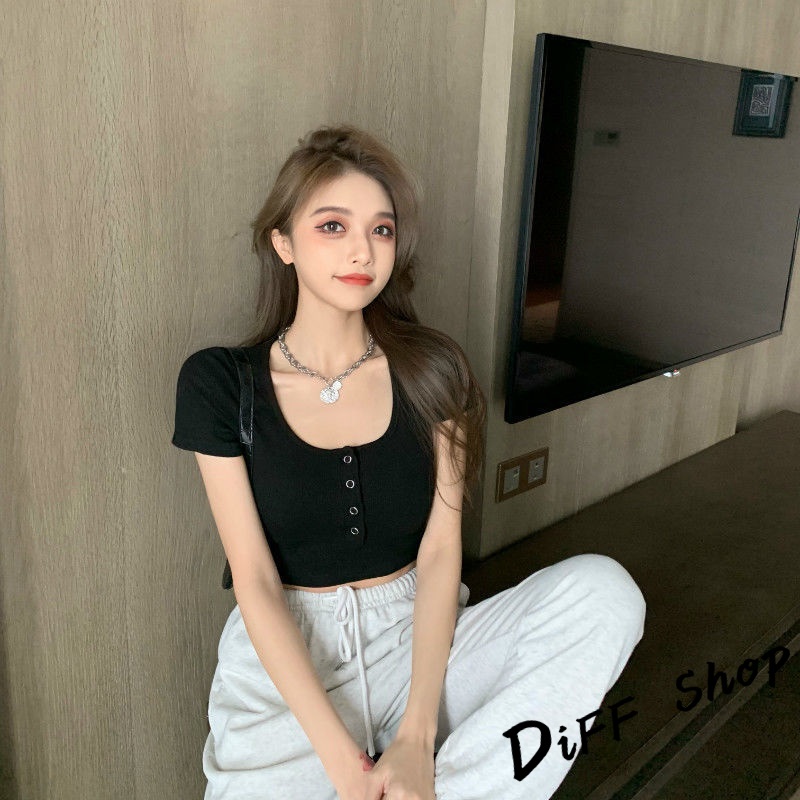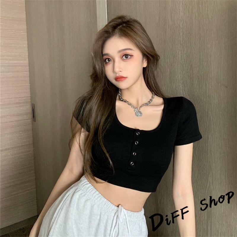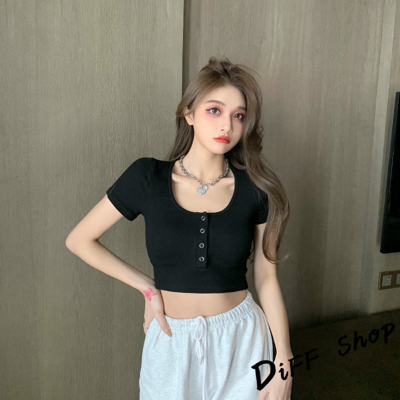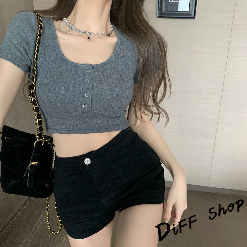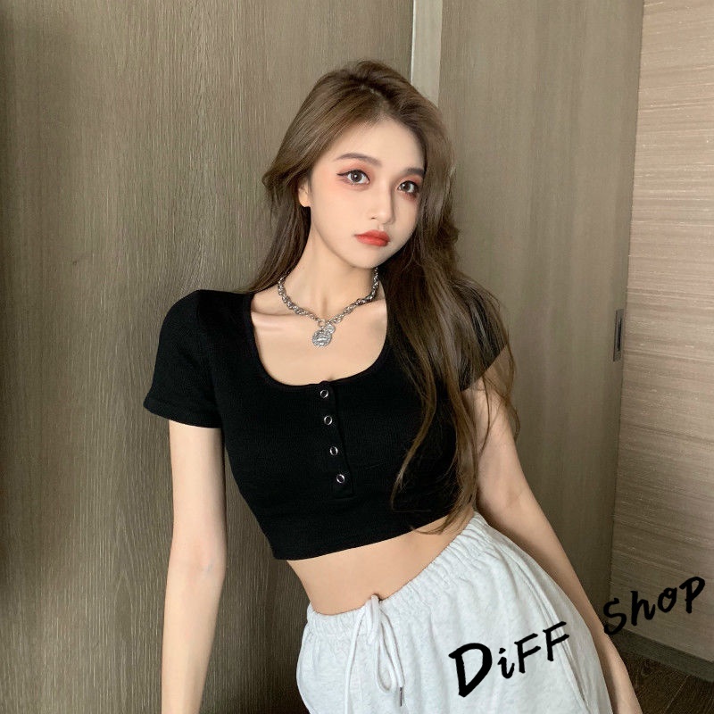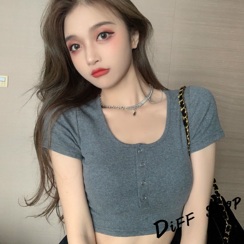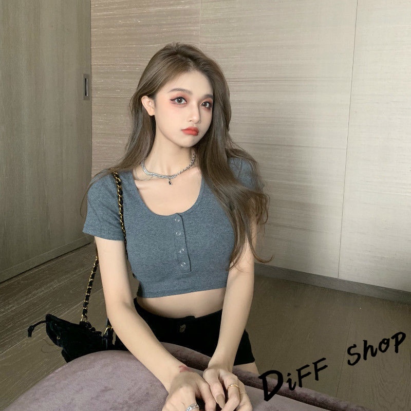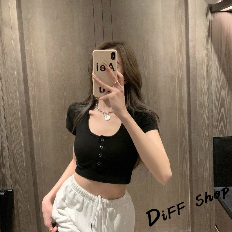 【DIFF】韓版圓領高腰顯瘦小心機短袖上衣 短袖t恤 女裝 顯瘦上衣 衣服 寬鬆上衣 素T 短板上衣【T409】