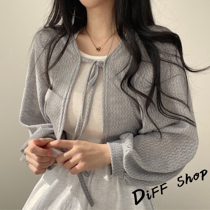 【DIFF】韓版復古綁帶薄款泡泡袖短版外套 上衣 女裝 衣服 外套 薄外套 罩衫 防曬外套 長袖上衣 針織 【J213】