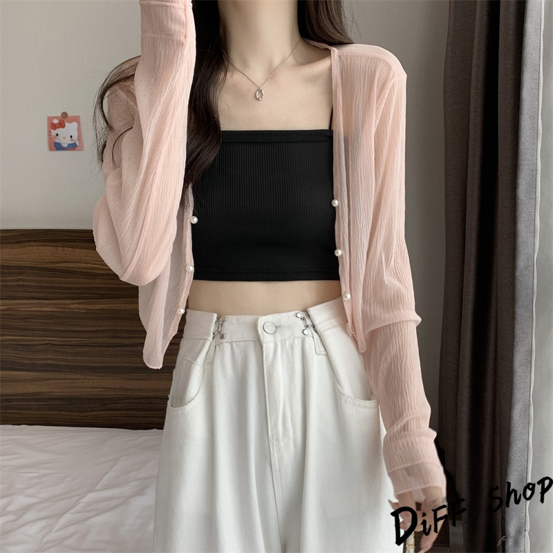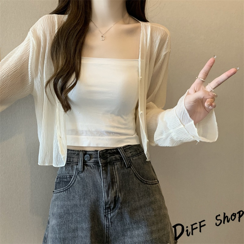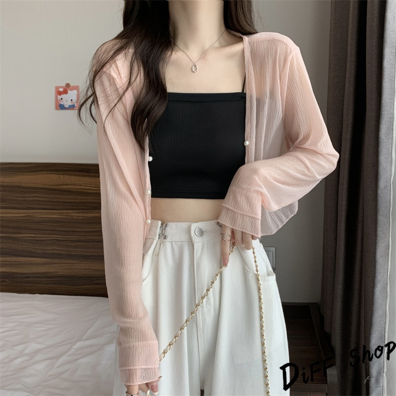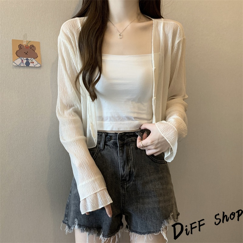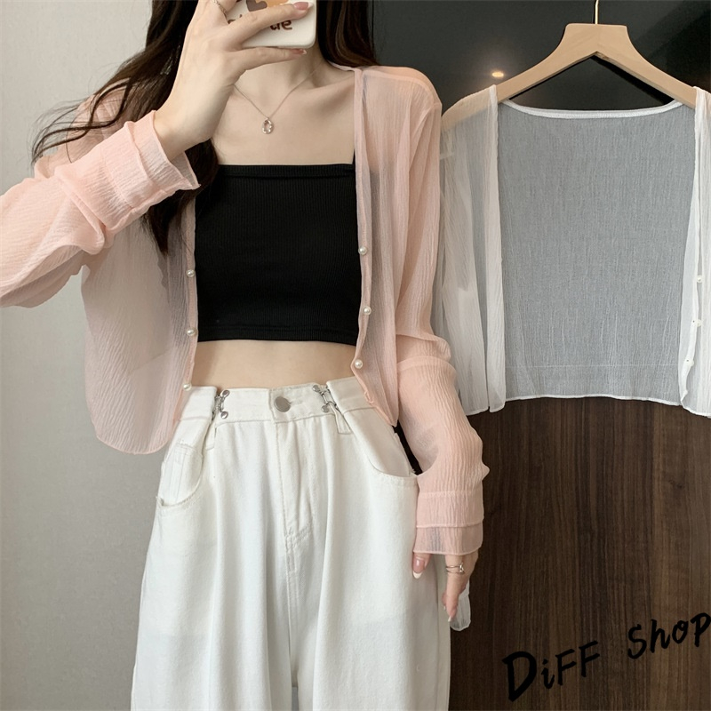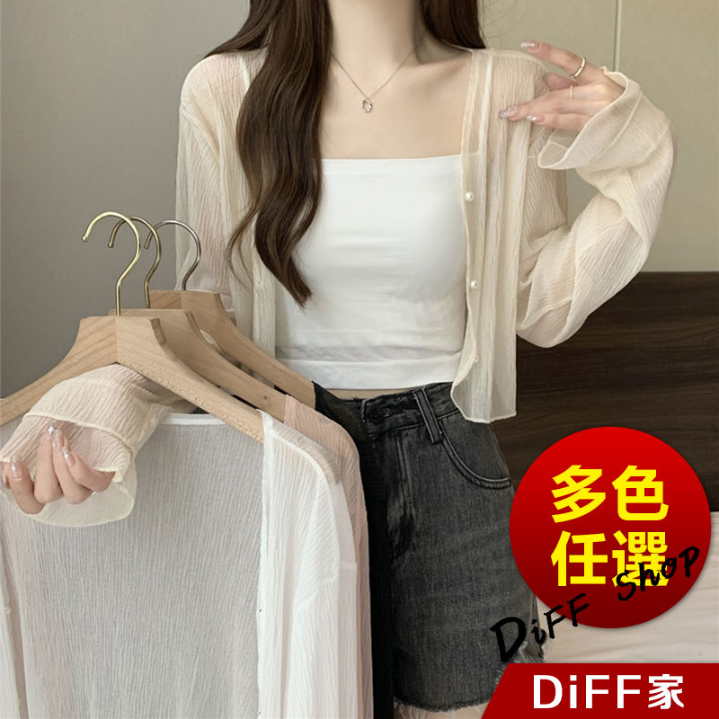 【DIFF】韓版薄款冰絲雪紡罩衫 上衣 女裝 衣服 外套 長袖上衣 薄外套 罩衫 防曬外套【J277】