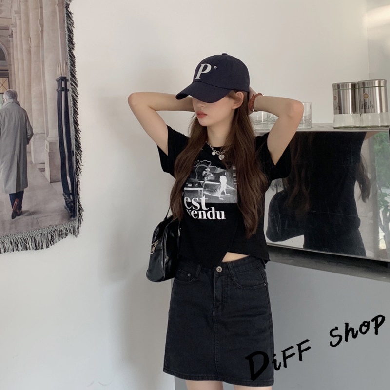 【DIFF】韓版設計感不規則短版上衣 短袖上衣 短袖t恤 女裝 顯瘦上衣 衣服 寬鬆上衣 短板上衣【T447】