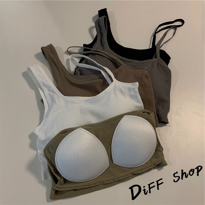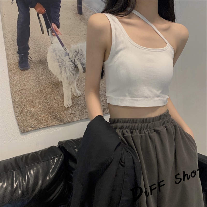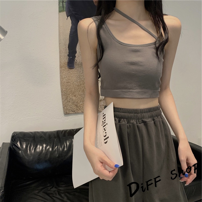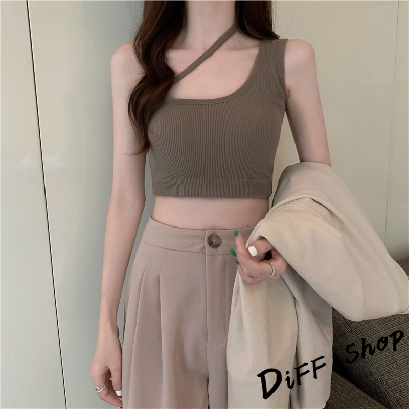 【DIFF】韓版不規則舒適吊帶背心 帶胸墊免穿內衣 上衣 小可愛 女裝 背心女 衣服 短版上衣【V200】