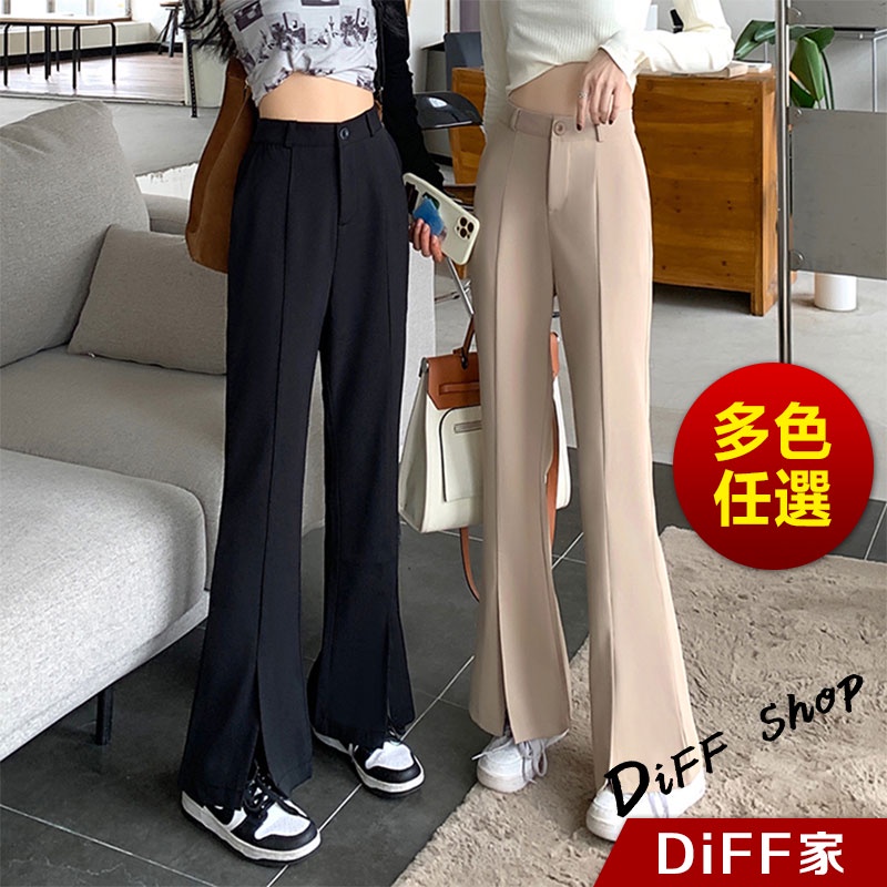 【DIFF】韓版休閒舒適高腰顯瘦寬褲 拖地褲 落地褲 長褲 寬褲 褲子 女裝 高腰喇叭褲 西裝褲 西裝喇叭褲【P189】