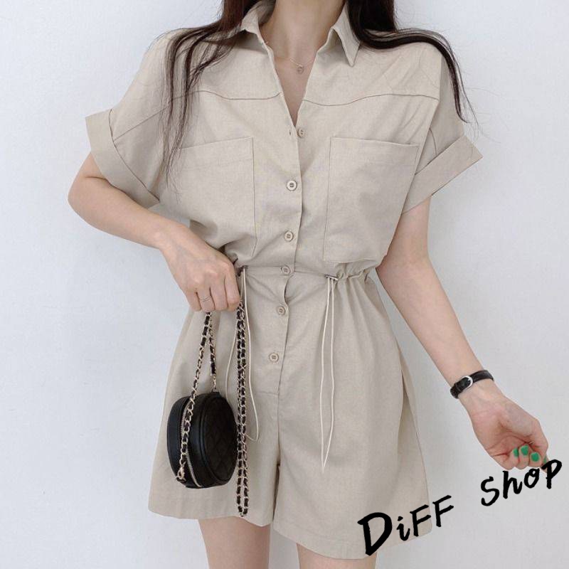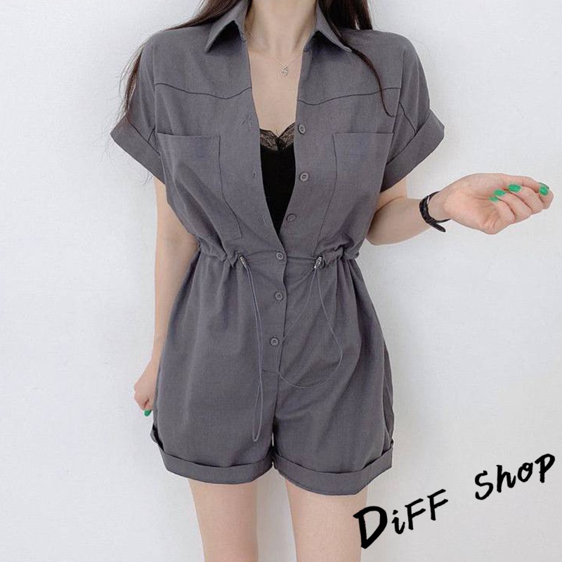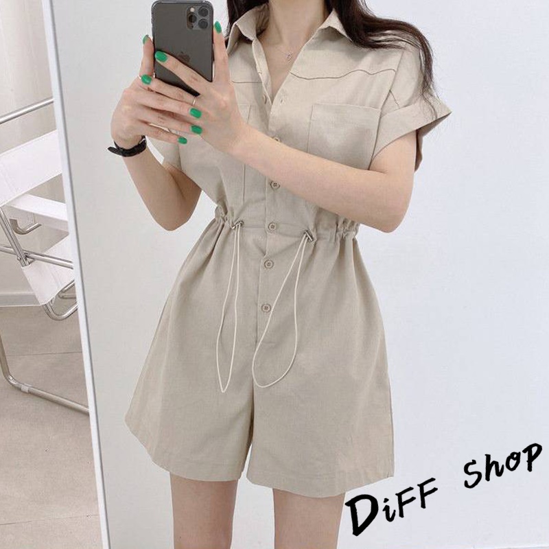 【DIFF】韓版氣質拉繩收腰顯瘦連體短褲套裝 連身裙 洋裝 短袖上衣 女裝 顯瘦上衣 衣服 休閒褲子【S197】
