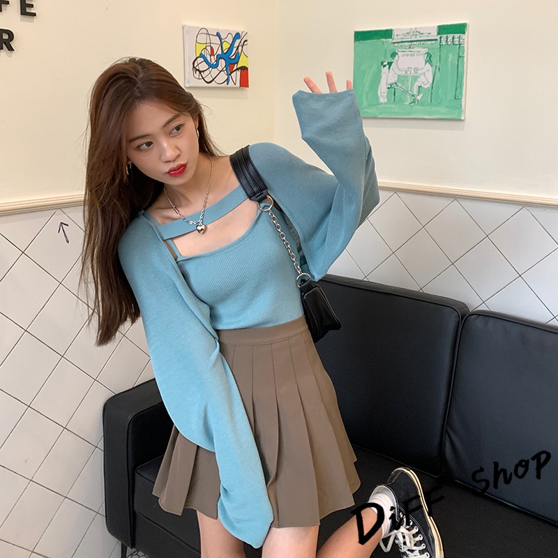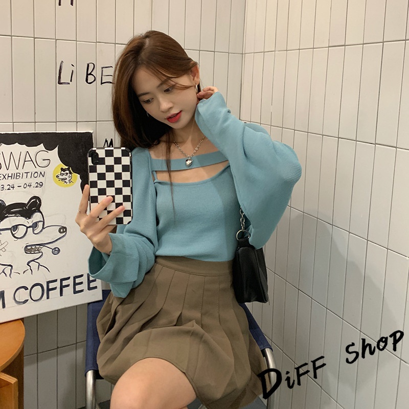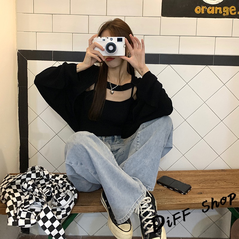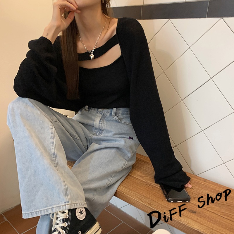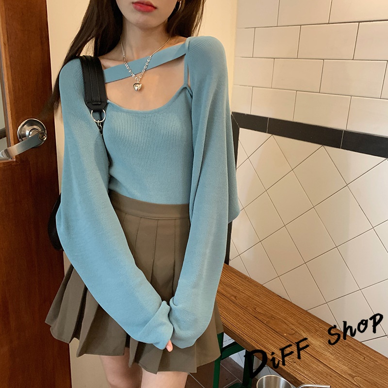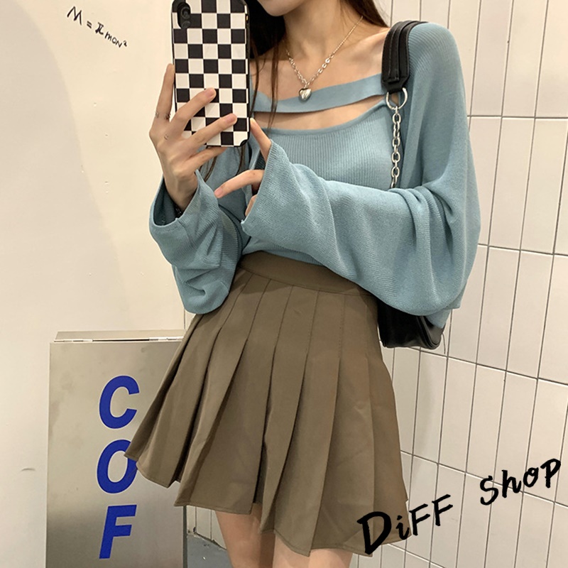 【DIFF】韓版寬鬆薄款針織外套+背心 套裝 上衣 女裝 衣服 外套 薄外套 罩衫 防曬外套 長袖上衣【J226】