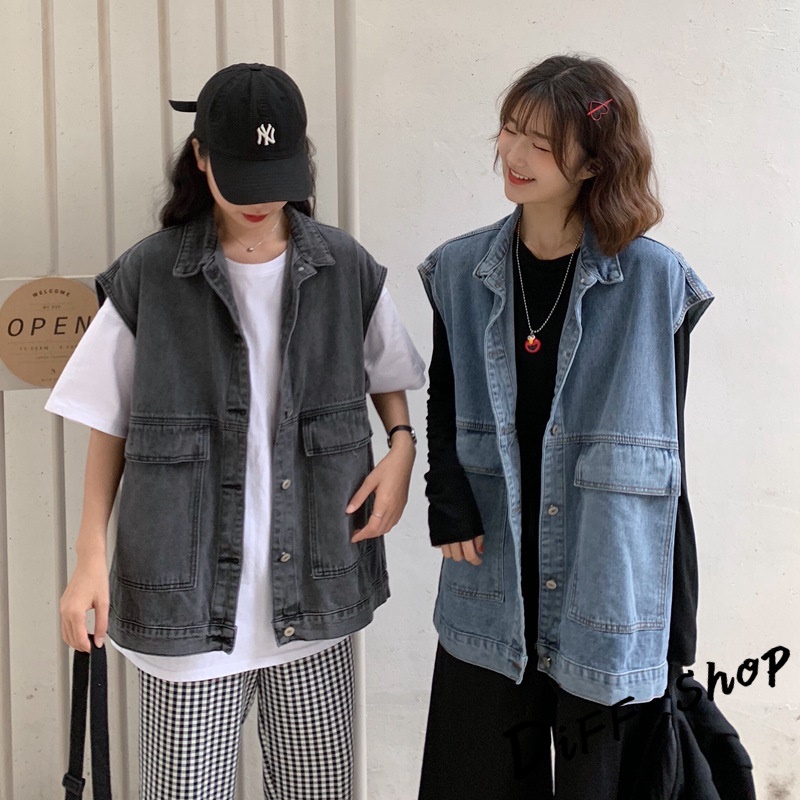 【DIFF】韓版寬鬆百搭顯瘦牛仔外套 牛仔上衣 牛仔背心 上衣 女裝 衣服 外套【J124】