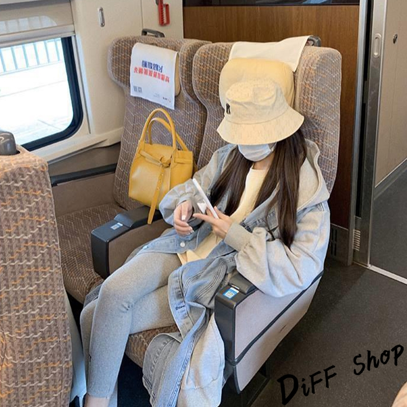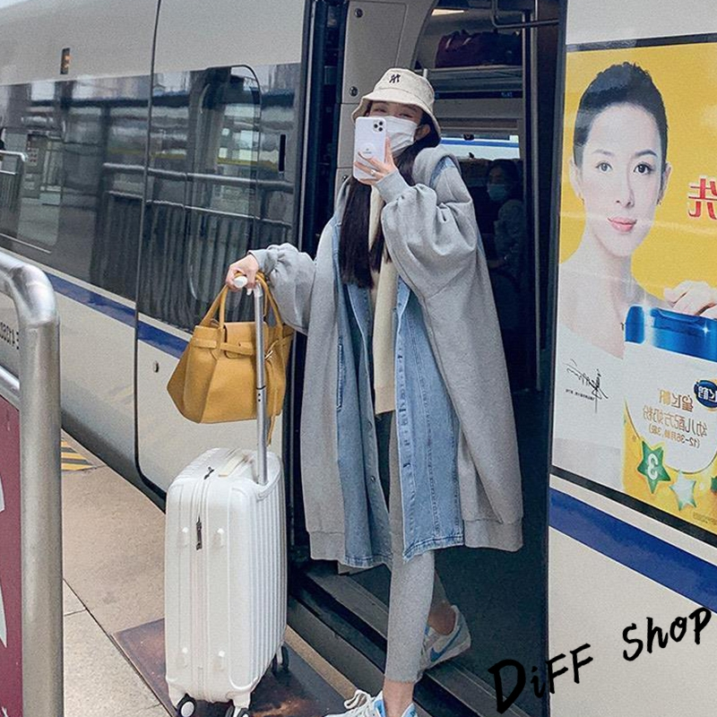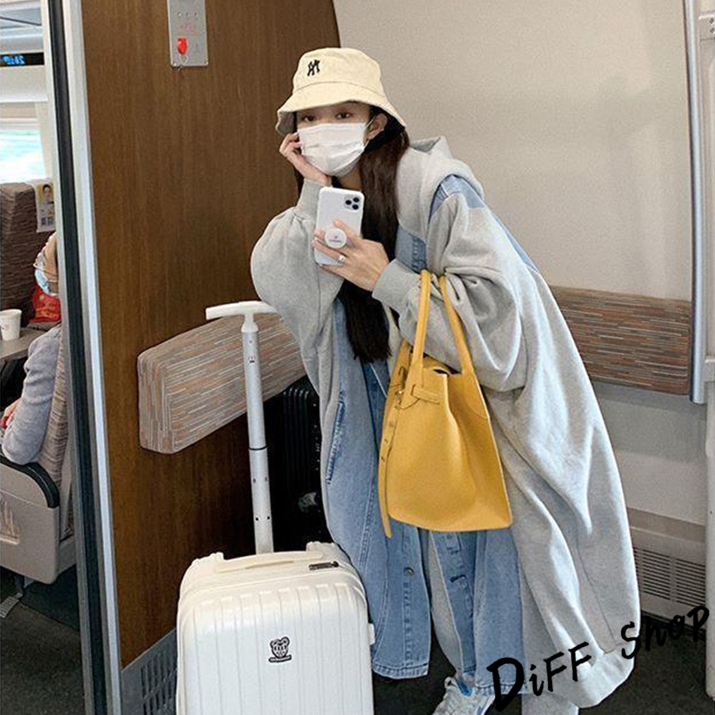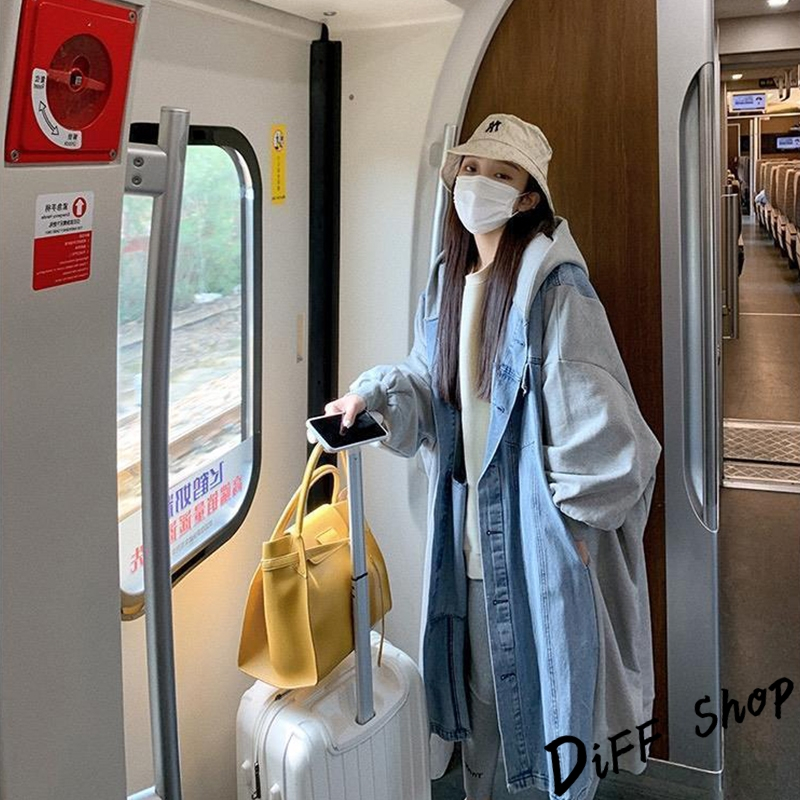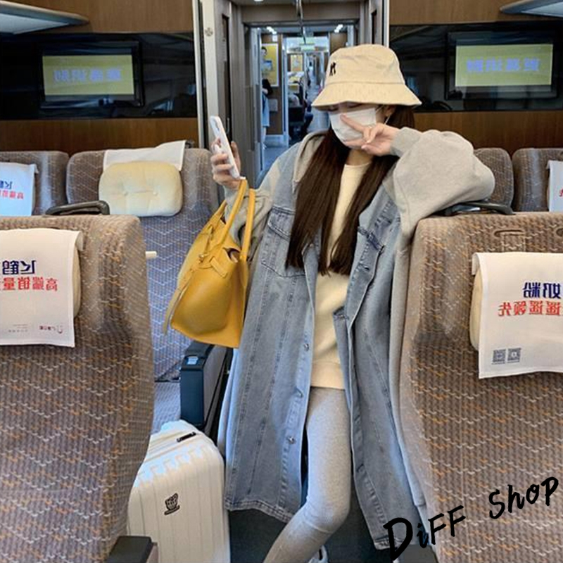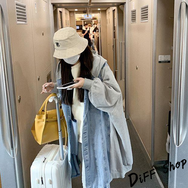 【DIFF】韓版休閒寬鬆拼接連帽牛仔外套 大衣 風衣 上衣 女裝 衣服 外套 長袖上衣 長版外套 連帽外套【J289】