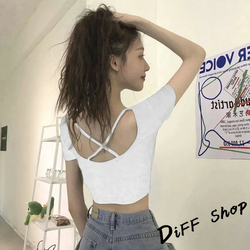 【DIFF】韓版後背鏤空顯瘦短版上衣 短袖上衣 短袖t恤 女裝 顯瘦上衣 衣服 寬鬆上衣 素T 短板上衣【T466】