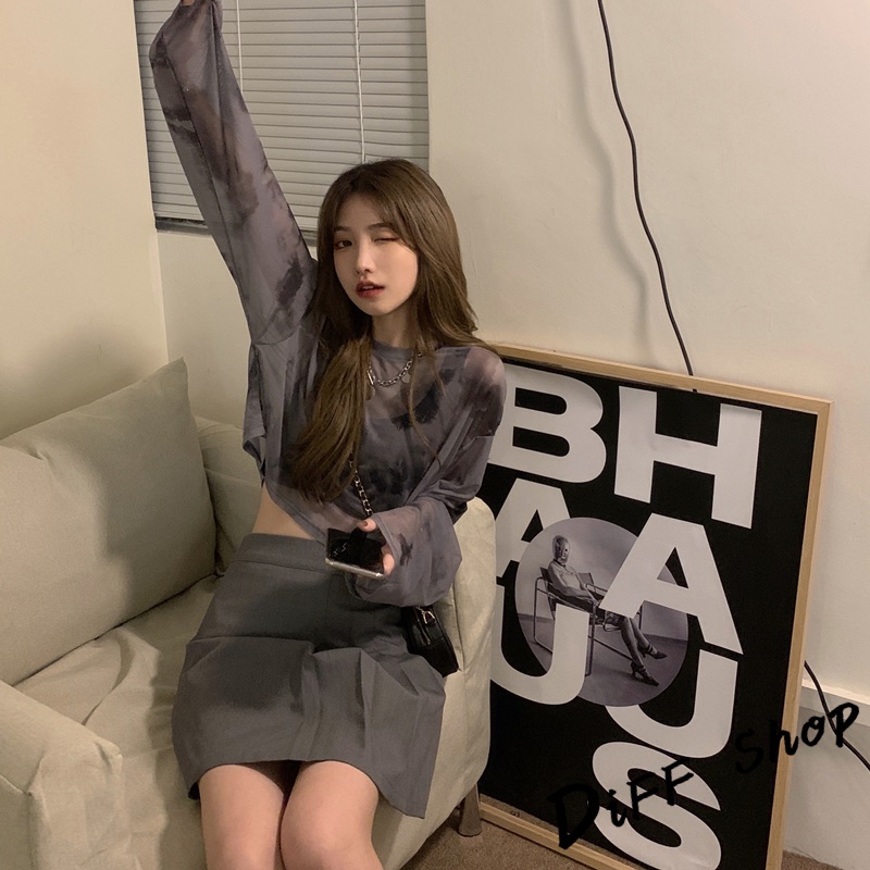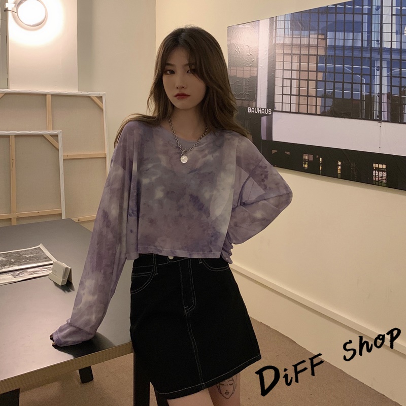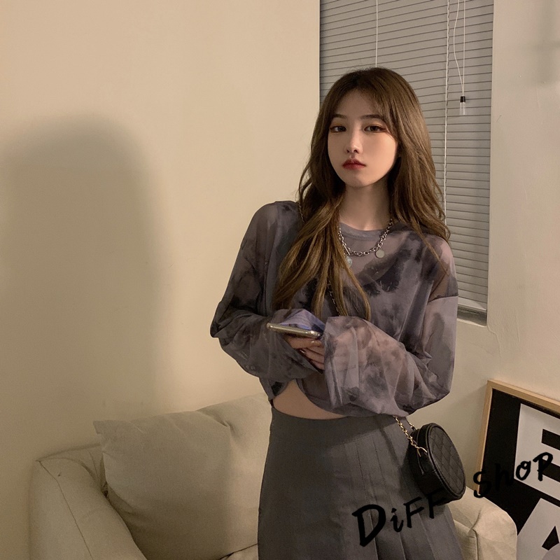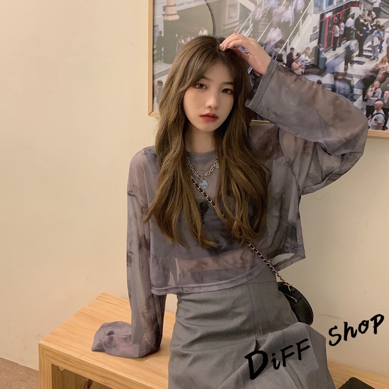 【DIFF】韓版炫彩小眾寬鬆薄款透視防曬上衣 罩衫 長袖上衣 衣服 短版上衣 短板上衣 女裝【W281】