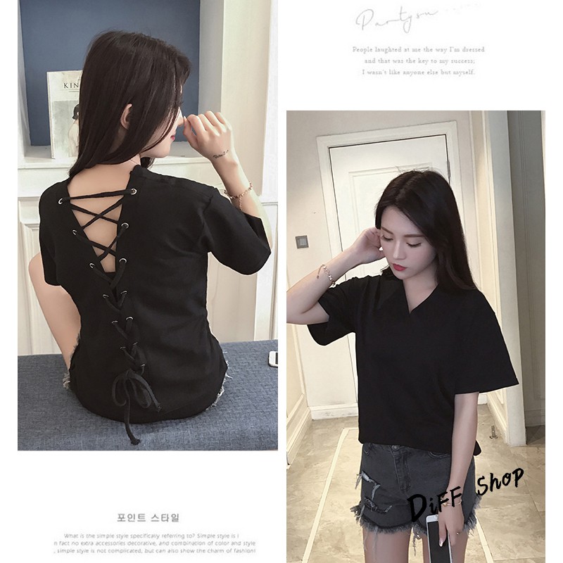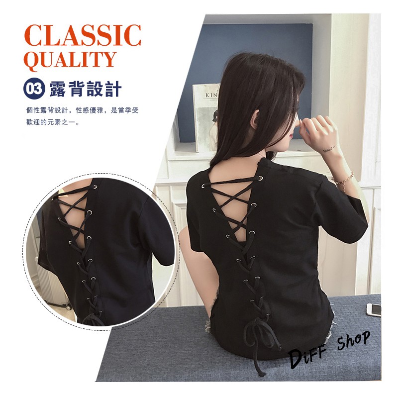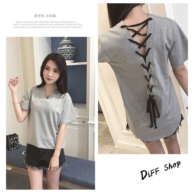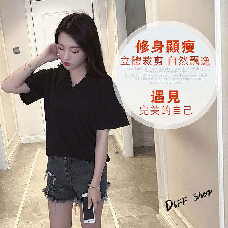 【DIFF】韓版中長款V領露背短袖t恤 連衣裙 寬鬆素色上衣 短袖上衣 衣服 女裝 素T【T183】