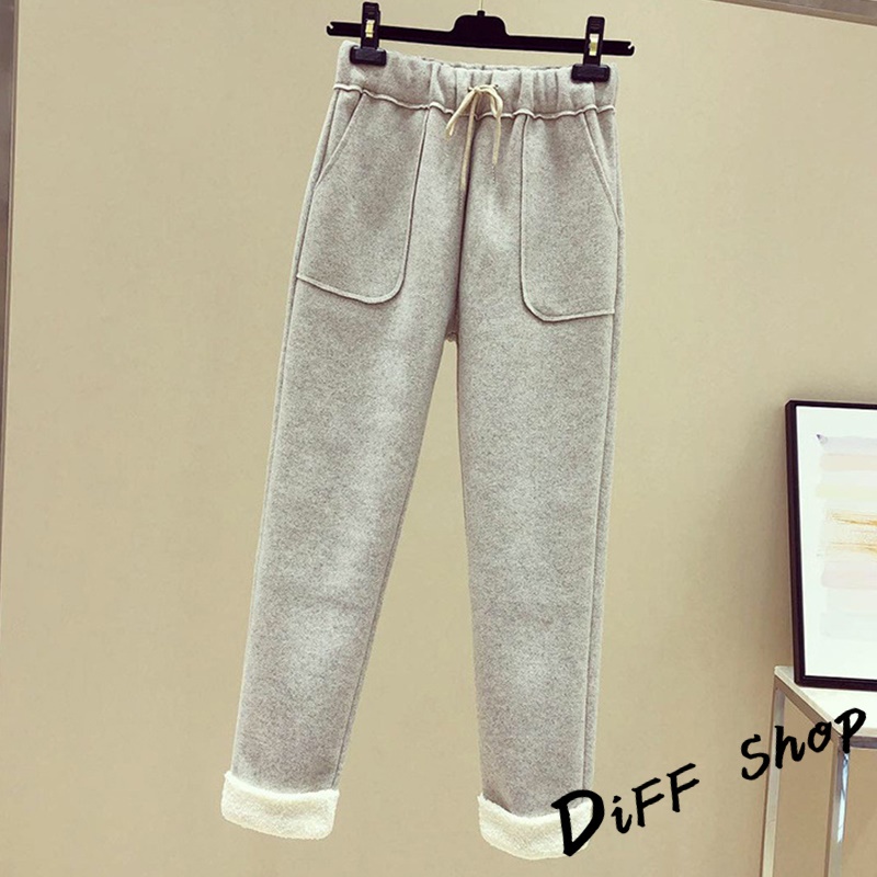 【DIFF】韓版高腰直筒內刷毛九分長褲 寬褲 褲子 長褲 休閒褲 女裝 睡褲 發熱褲 保暖褲【P216】