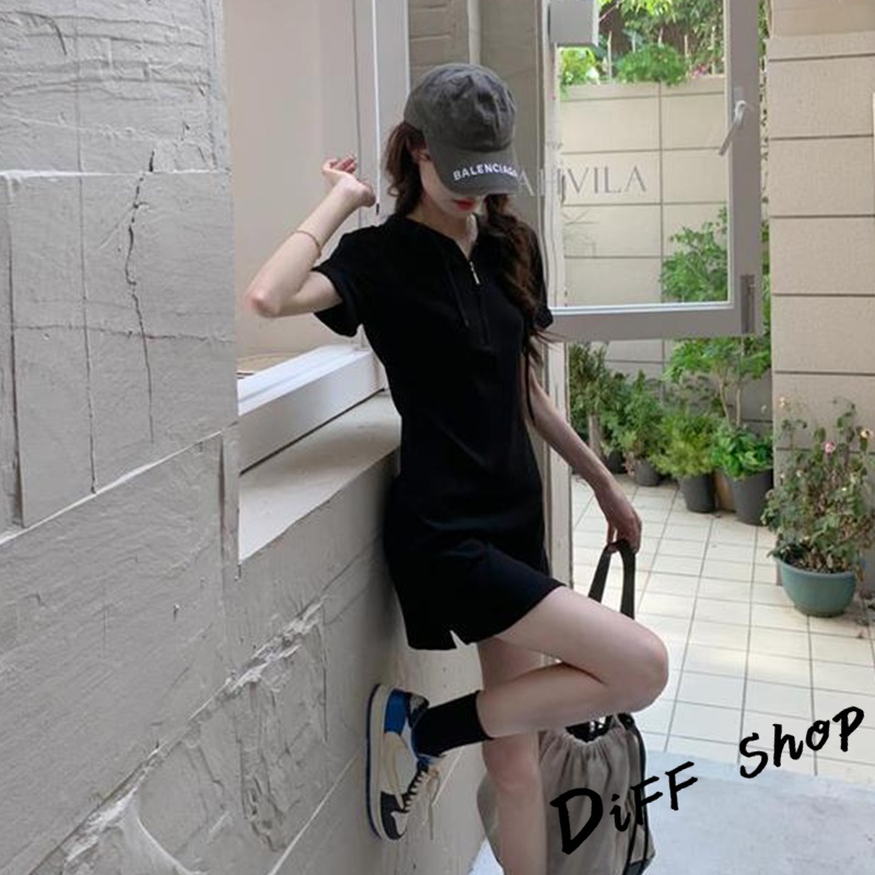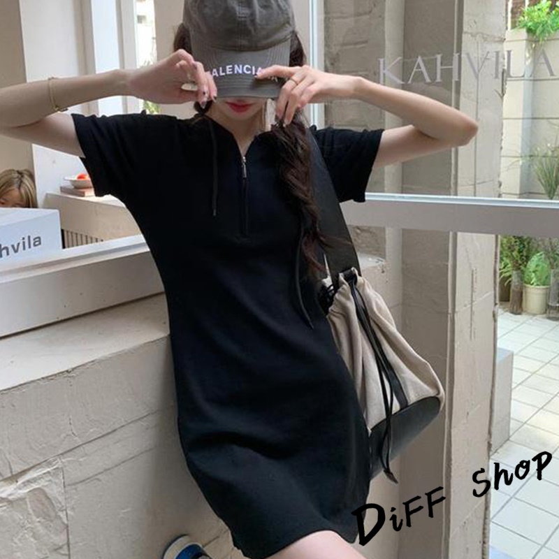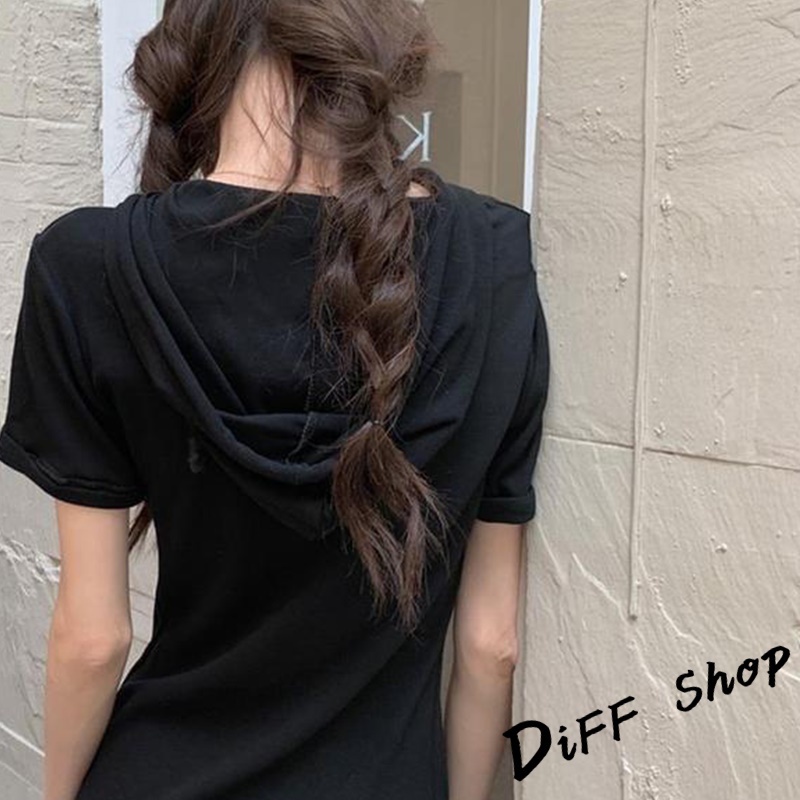 【DIFF】韓版設計感顯瘦連帽連衣裙 短裙 套裝 連身裙 連帽上衣 短袖上衣 短袖t恤 女裝 顯瘦上衣 衣服【S214】