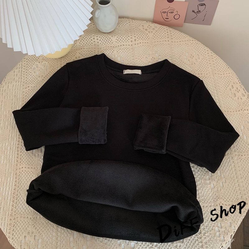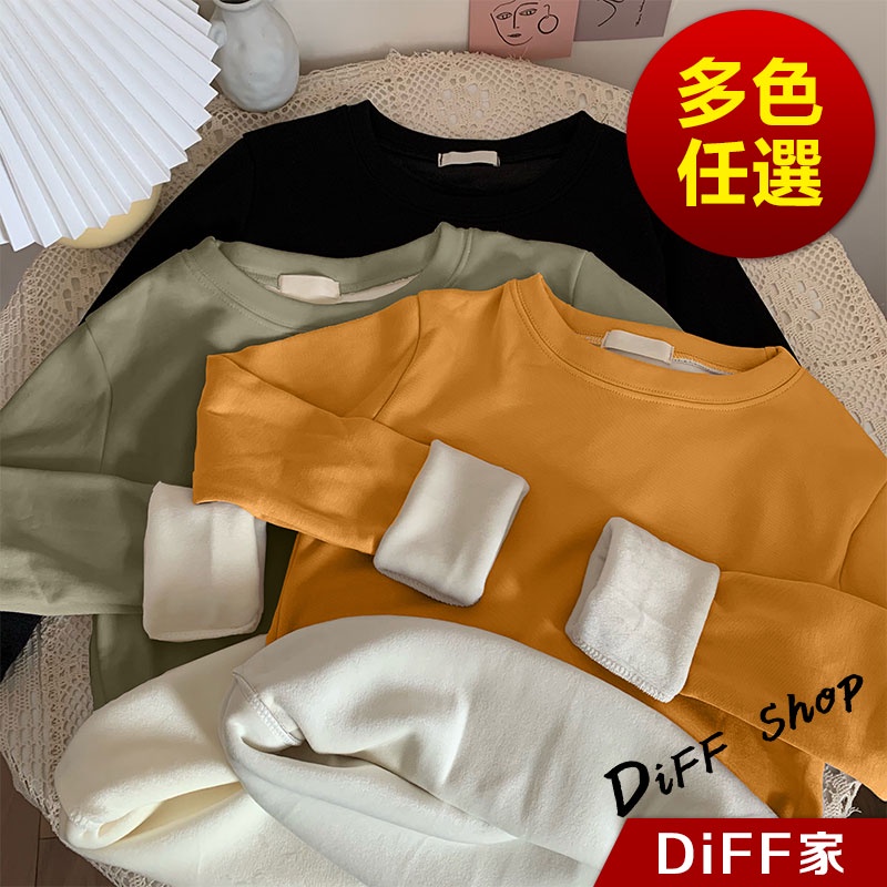 【DIFF】韓版內刷毛保暖素色長袖上衣 女裝 衣服 寬鬆上衣 顯瘦上衣 長袖t恤 冬裝 發熱衣 素T【W21】
