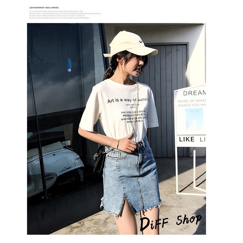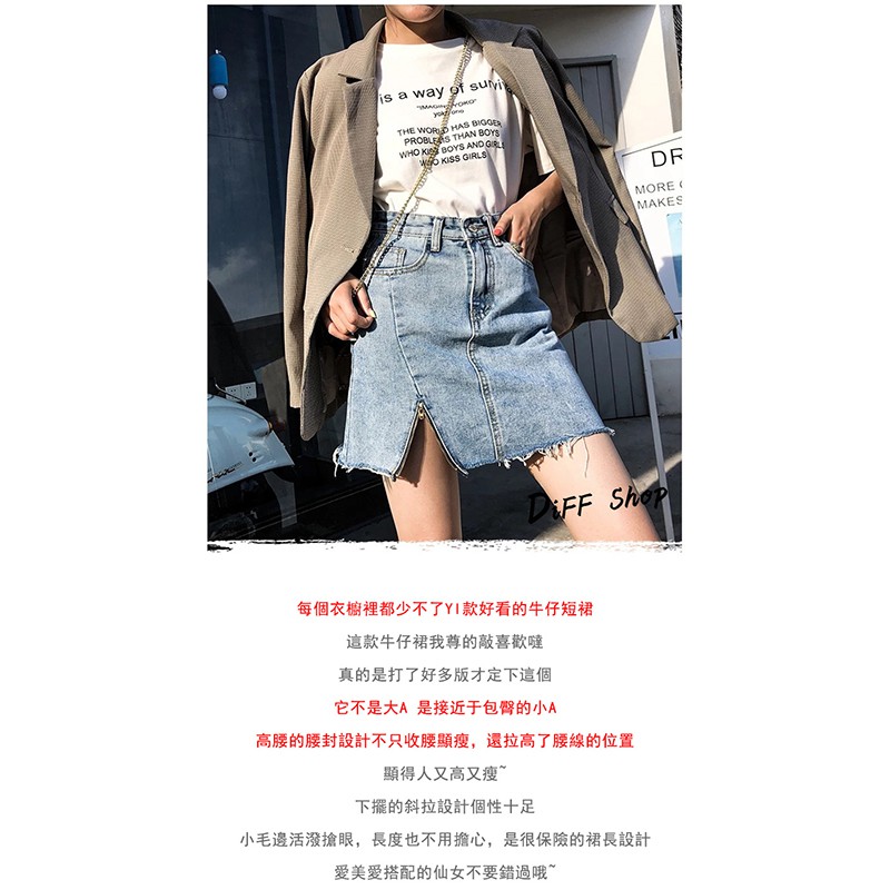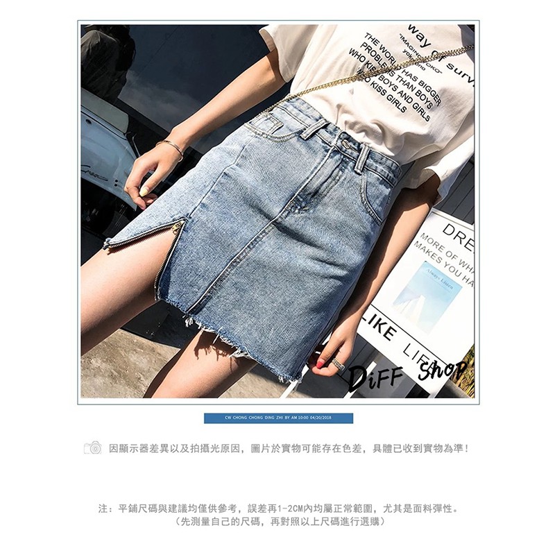 【DIFF】春夏新款韓版側邊拉鍊高腰淺色牛仔裙 裙子 百搭 短裙 高腰裙 女裝【P81】