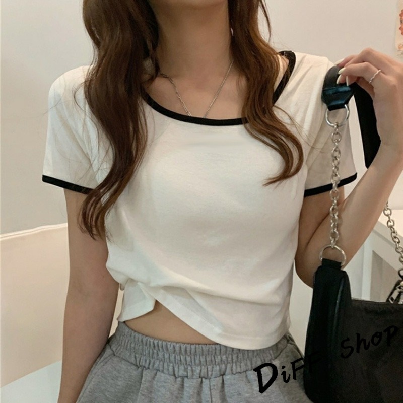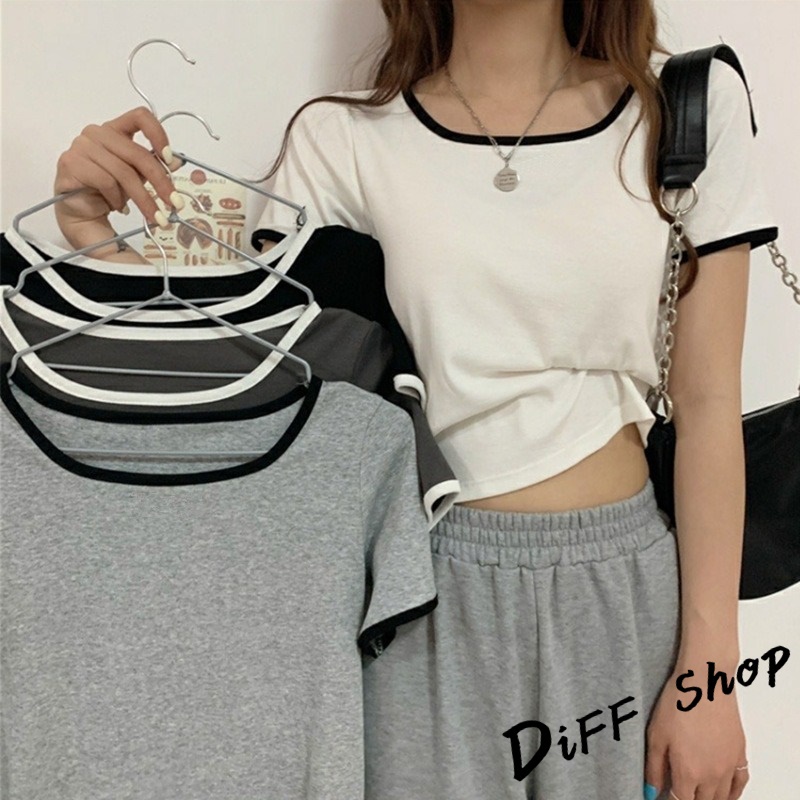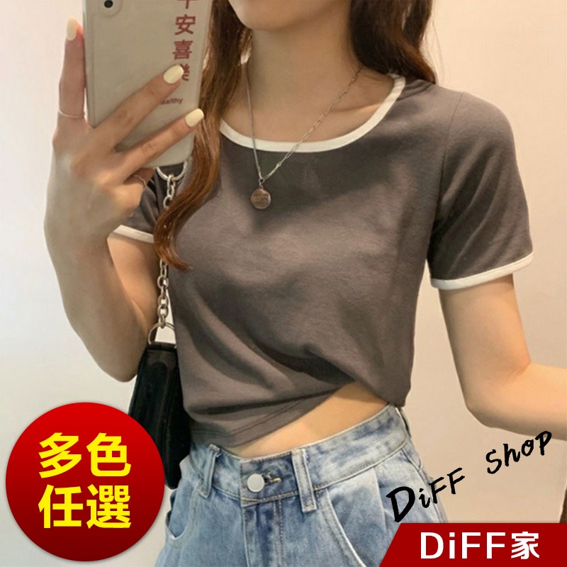 【DIFF】 韓版小心機撞色短版上衣 短袖上衣 短袖t恤 女裝 顯瘦上衣 衣服 寬鬆上衣 素T 短板上衣【T396】