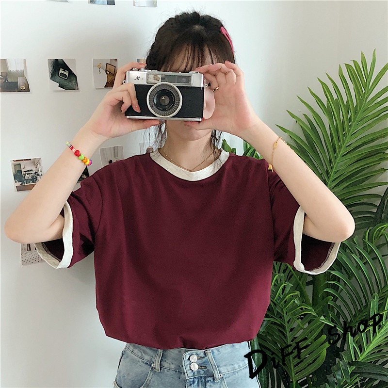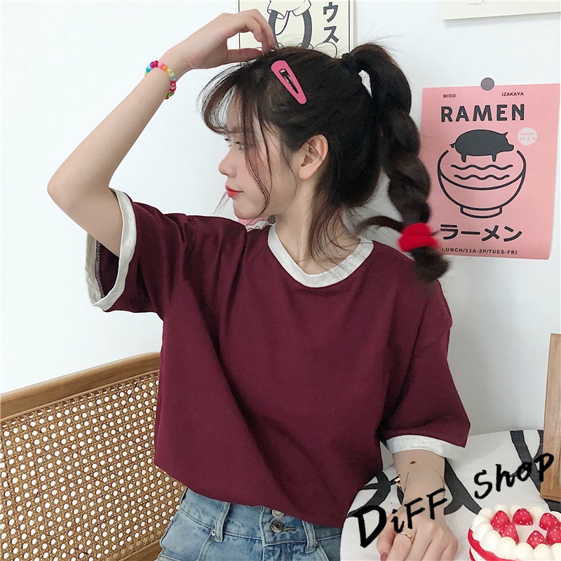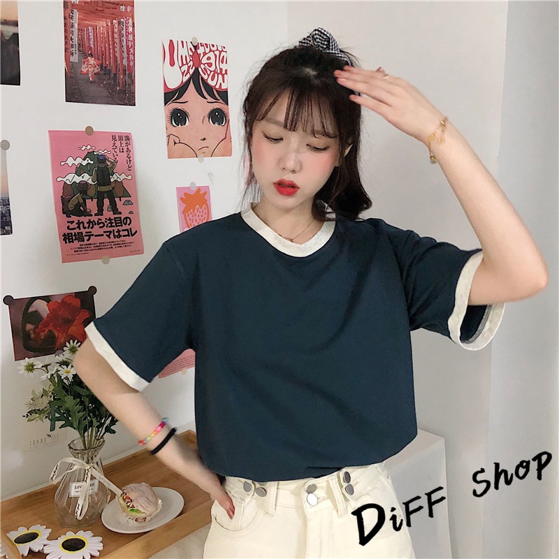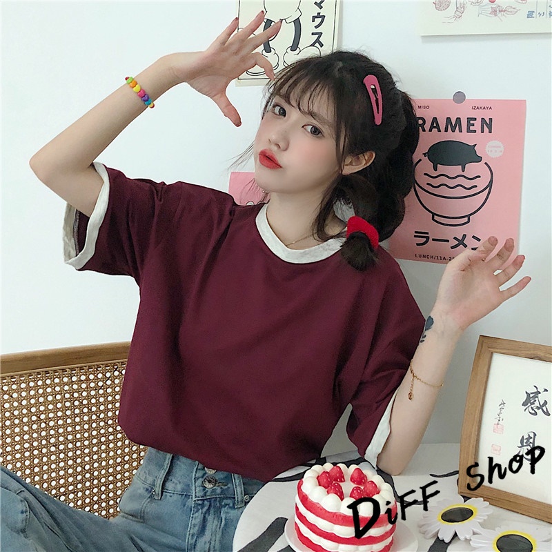 【DIFF】韓版寬鬆撞色系短袖上衣 短袖t恤 女裝 顯瘦上衣 衣服 寬鬆上衣 素T【T445】