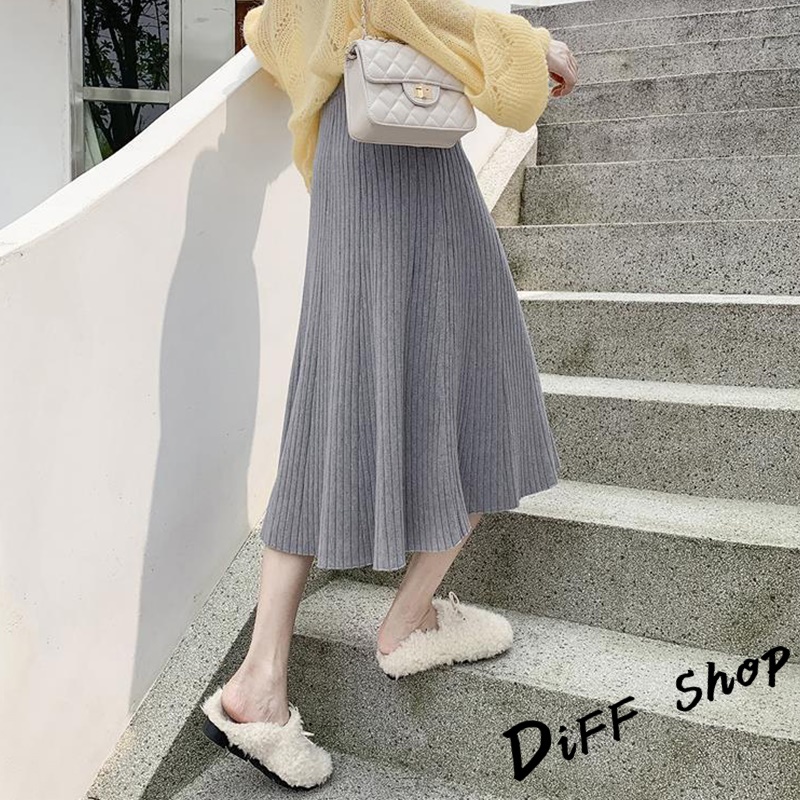 【DIFF】韓版高腰顯瘦薄款針織半身裙 裙子 長裙 百褶裙 女裝【P220】