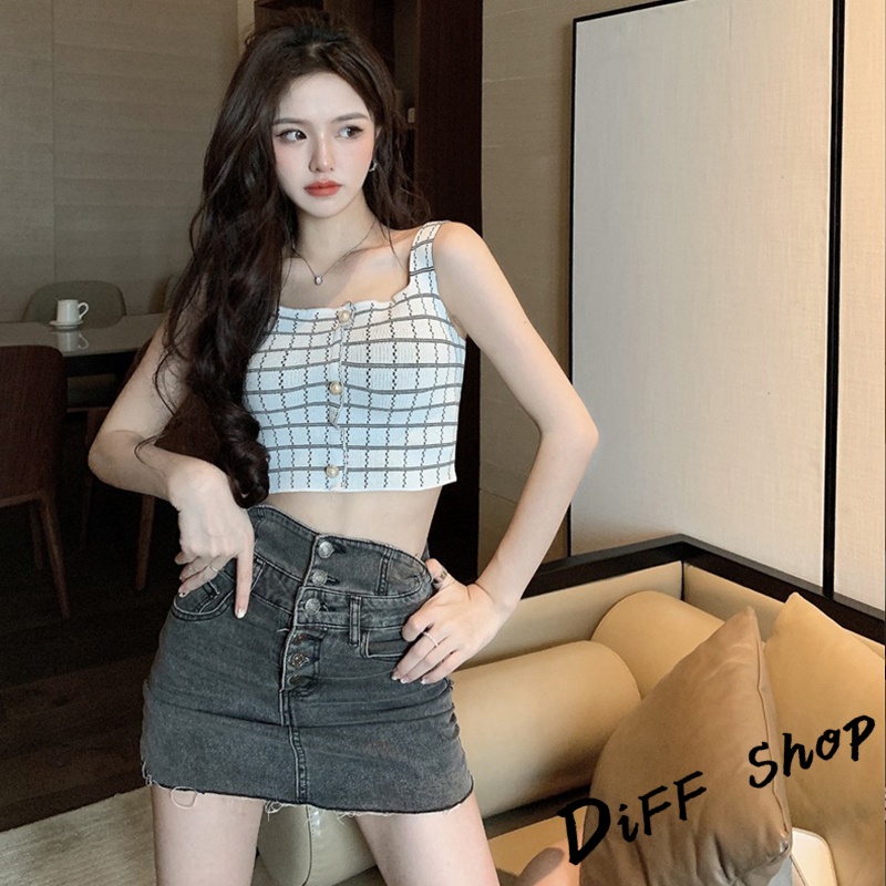 【DIFF】韓版氣質設計感美背格子短版背心 上衣 小可愛 女裝 背心女 衣服 短版上衣【V223】