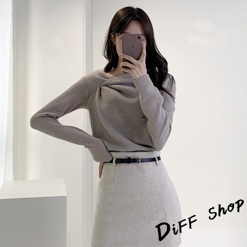 【DIFF】韓版磨毛設計感斜領不規則針織上衣 毛衣 長袖上衣 女裝 衣服 寬鬆上衣 顯瘦上衣 長袖t恤【W315】