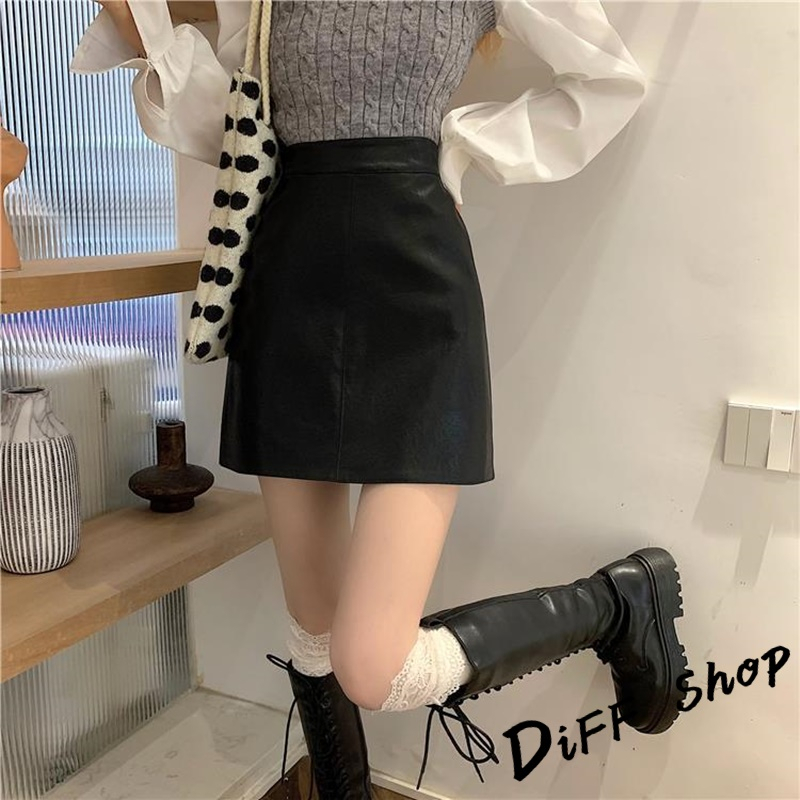 【DIFF】韓版高腰顯瘦皮短裙 半身裙 A字裙 裙子 女裝 褲子 短裙 皮褲【P214】