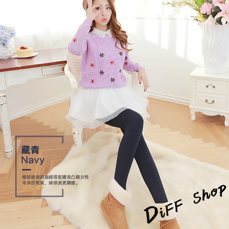 【DIFF】韓版高腰加厚內刷毛保暖內搭褲 內刷毛長褲 保暖長褲 褲子 長褲 女裝 發熱褲 保暖褲 黑褲【P210】