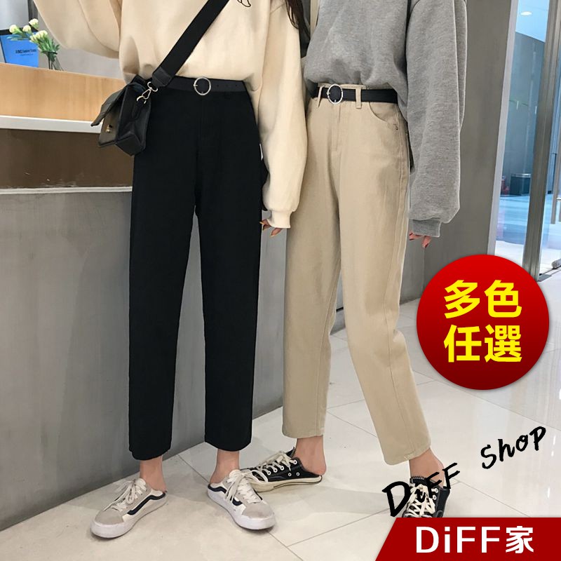 【DIFF】韓版百搭寬鬆直筒顯瘦長褲 寬褲 九分褲 長褲 顯瘦褲 休閒褲 褲子 黑褲 內搭褲 牛仔褲【P102】