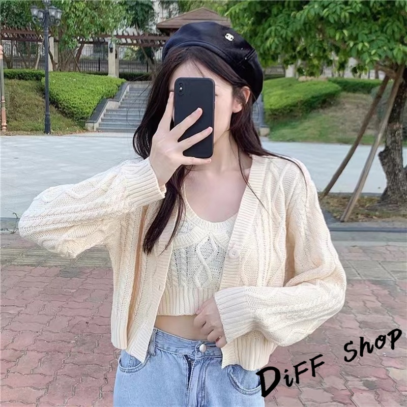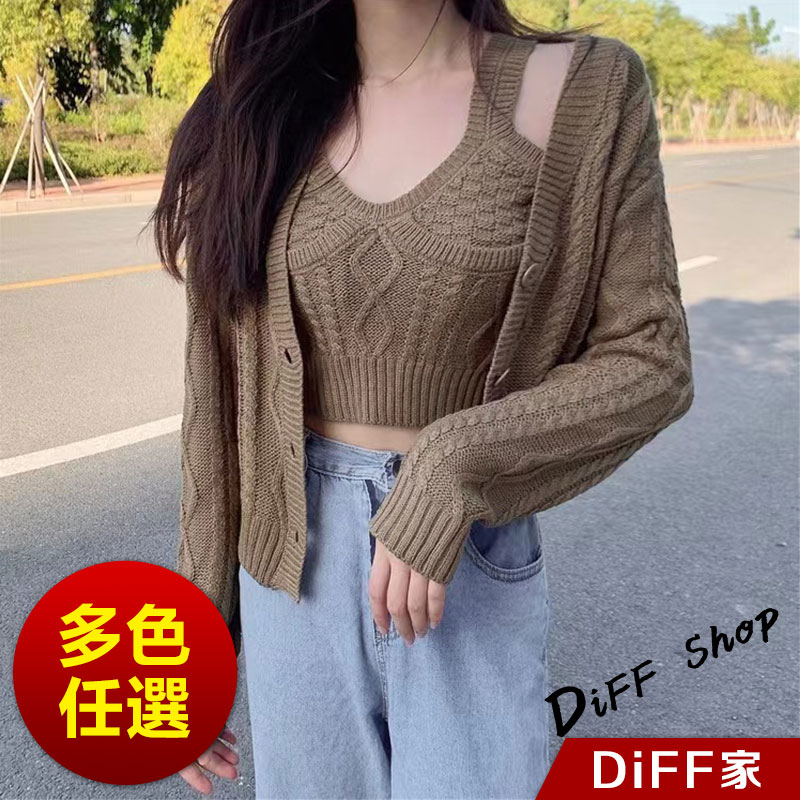 【DIFF】韓版可鹽可甜麻花薄針織外套+薄針織背心 上衣 女裝 衣服 長袖上衣 薄外套 防曬外套 小可愛【J261】