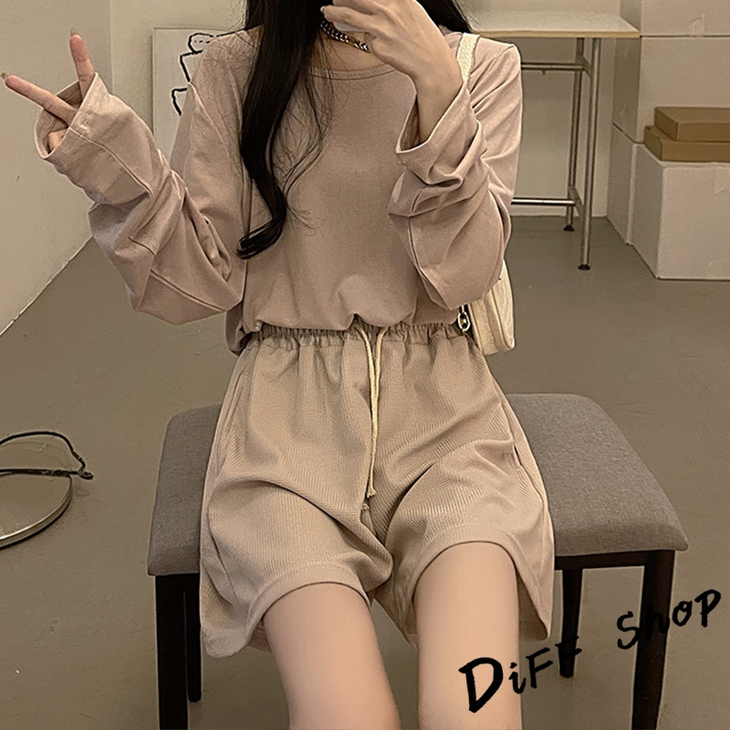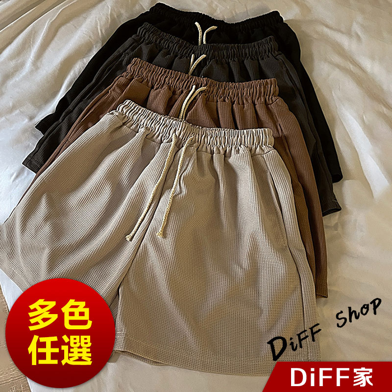 【DIFF】韓版鬆緊高腰休閒直筒垂感運動短褲 休閒褲 短褲 褲子 運動短褲 女裝 休閒短褲 寬褲 運動褲【P208】