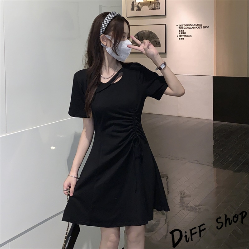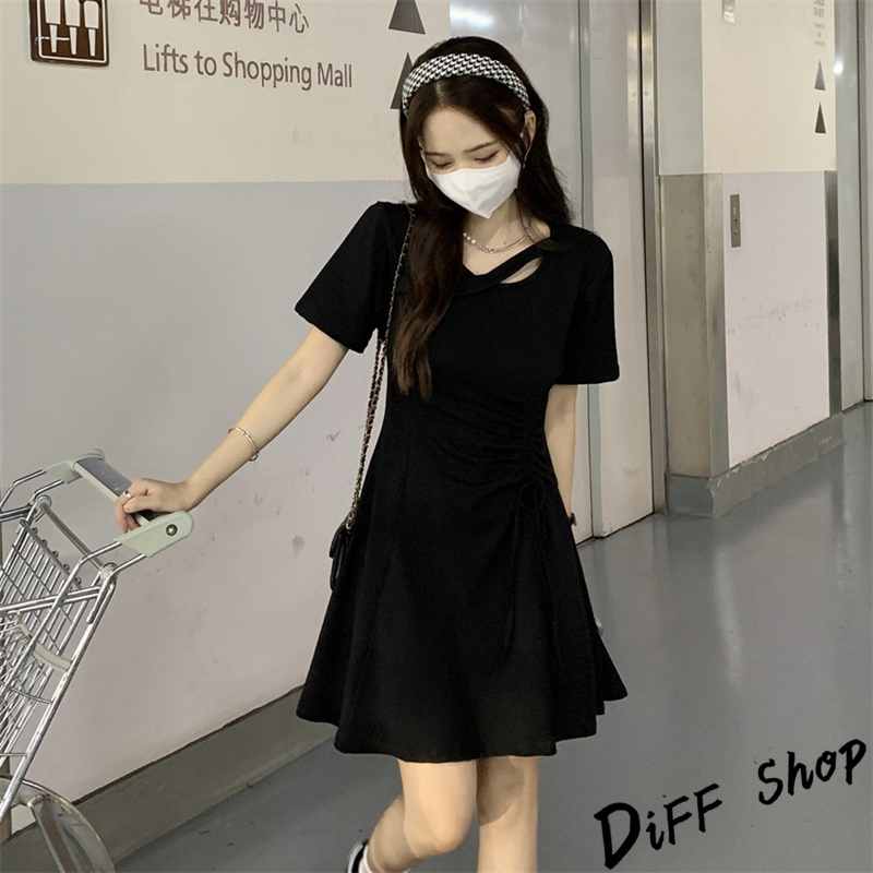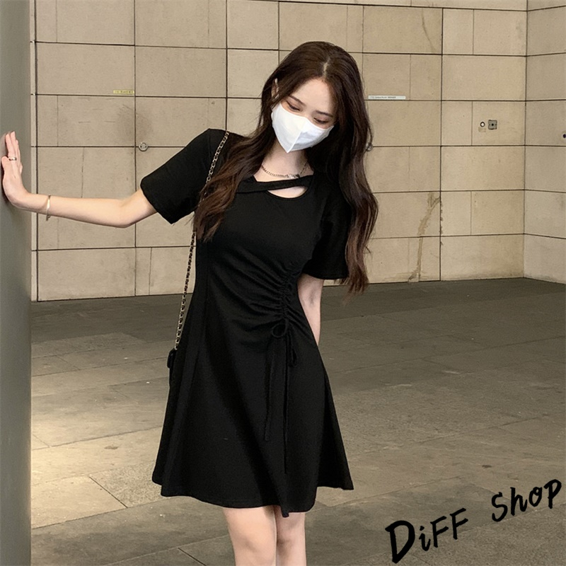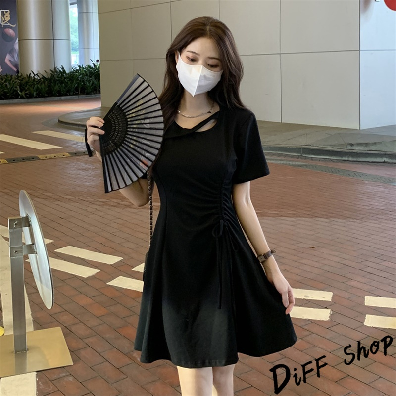 【DIFF】韓版收腰顯瘦蓬蓬小黑裙 套裝 連身裙 連衣裙 裙子 短裙 短袖上衣 女裝 衣服 洋裝【S268】