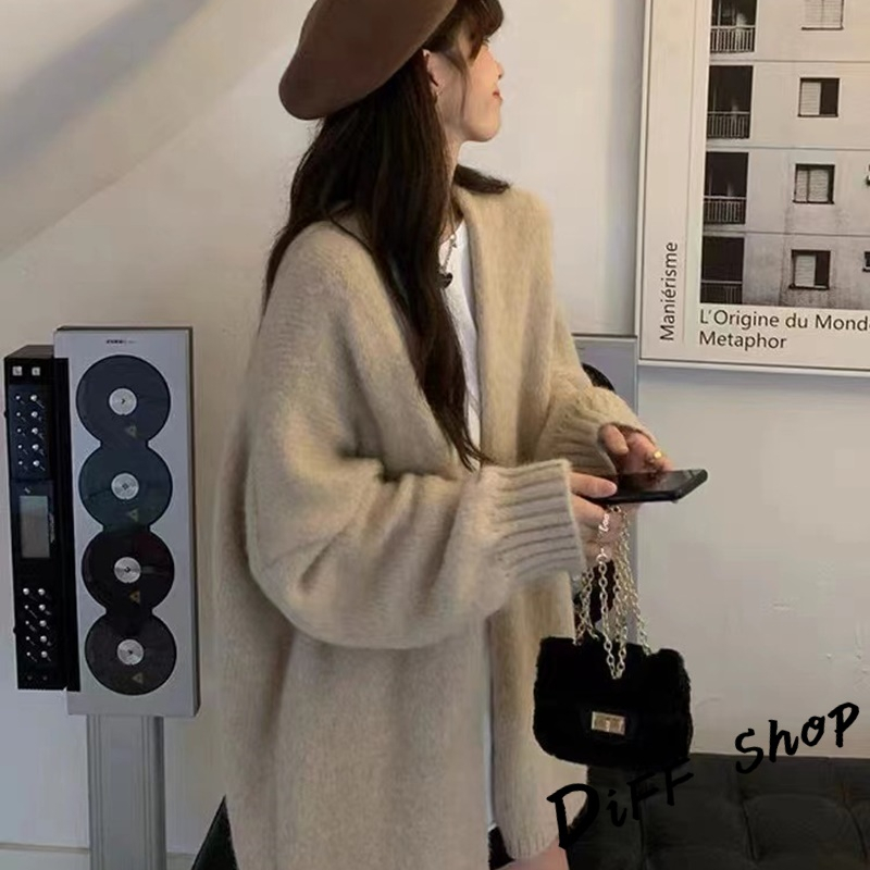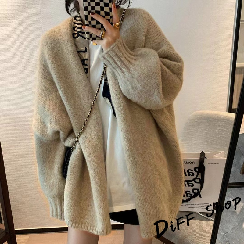 【DIFF】韓版寬鬆設計感氣質毛衣外套 長版外套 大衣 上衣 女裝 衣服 外套 長袖上衣【J190】