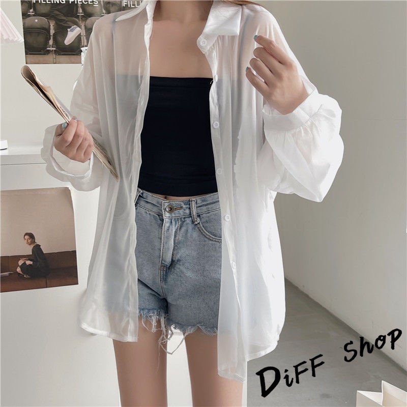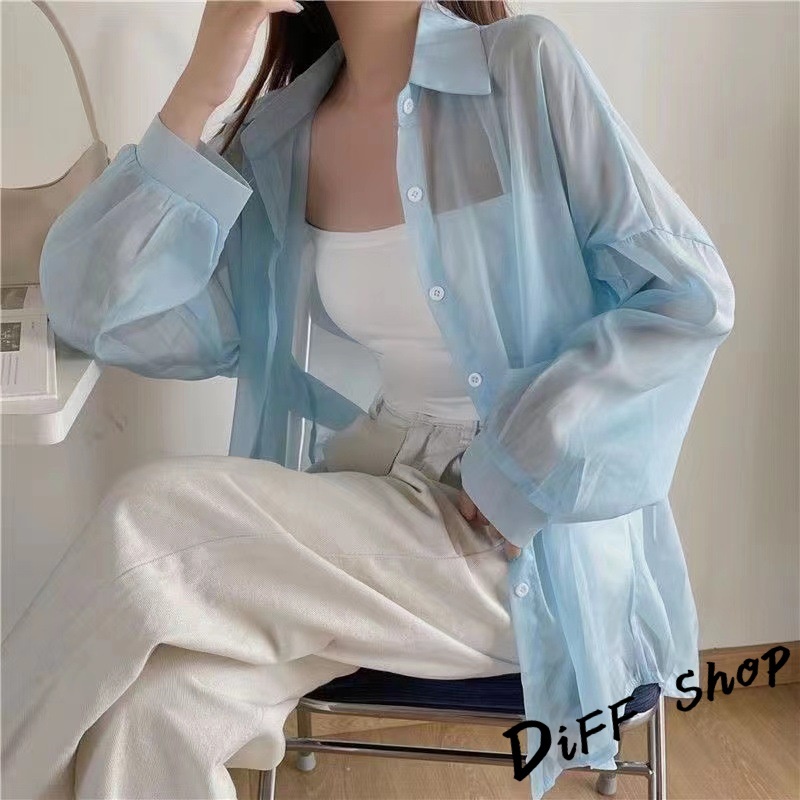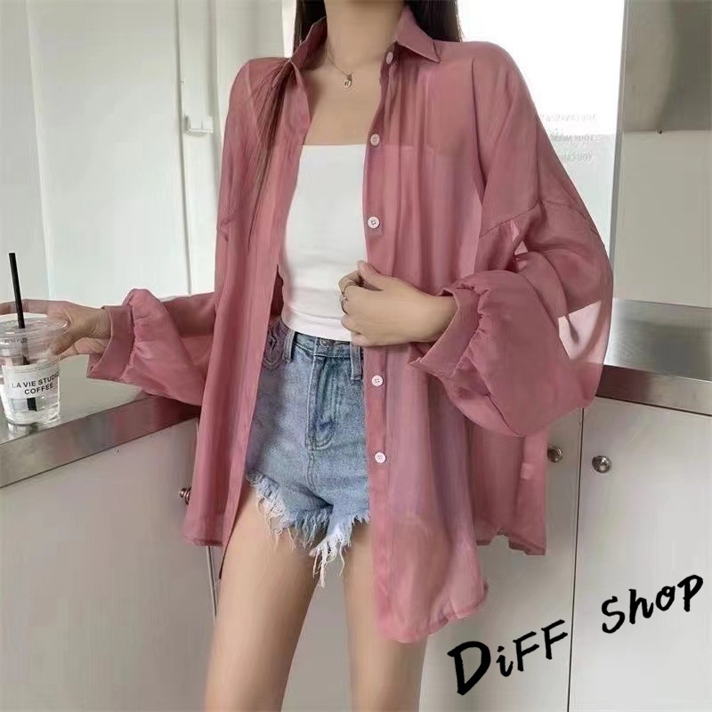 【DIFF】韓版雪紡薄款寬鬆防曬外套 襯衫 上衣 女裝 衣服 外套 長袖上衣 薄外套 罩衫【J217】
