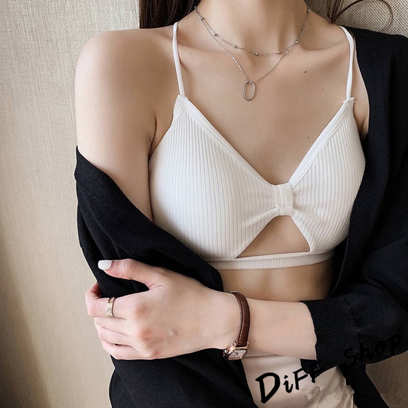 【DIFF】免穿內衣 附胸墊性感中縷空背交叉背心 蝴蝶結背心 小可愛 女裝【V90】