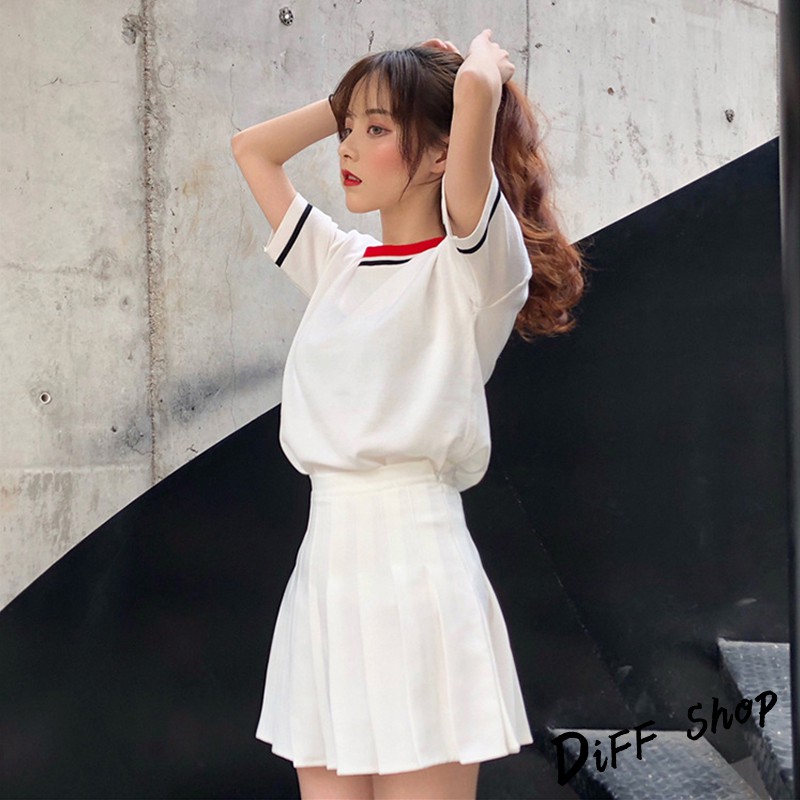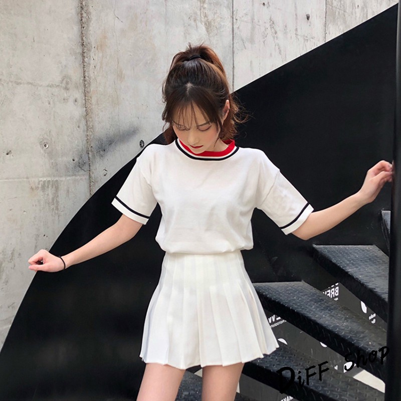 【DIFF】韓版撞色系寬鬆針織上衣 短袖上衣 女裝 T恤 衣服【T211】