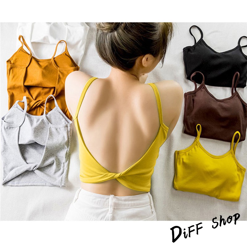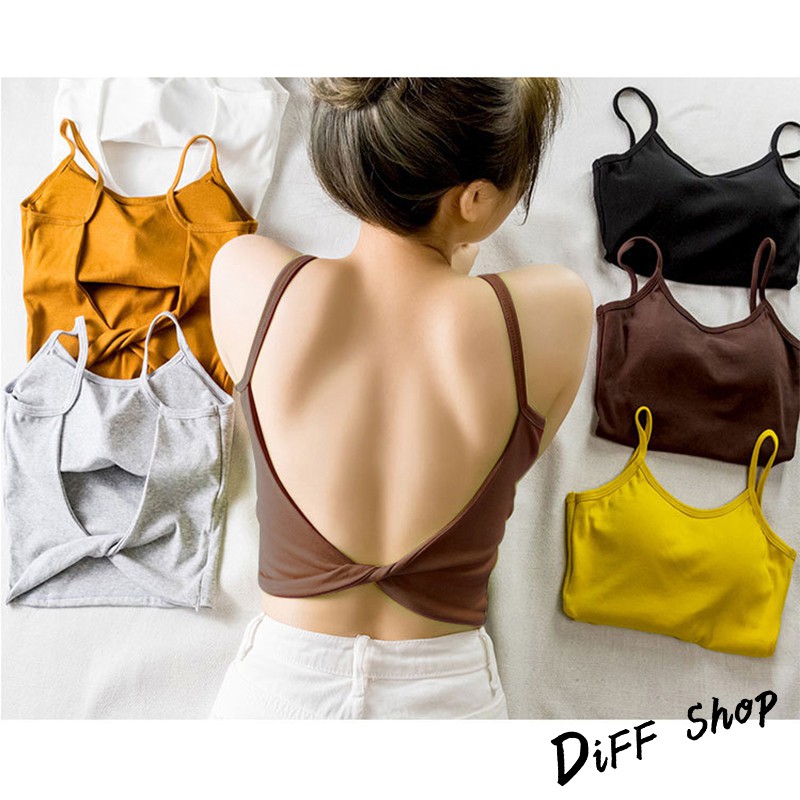 【DIFF】韓版性感美背大U挖背扭結短版背心 免穿內衣 好穿帶胸墊 小可愛 女裝 上衣 女裝 衣服【V93】