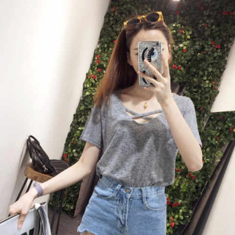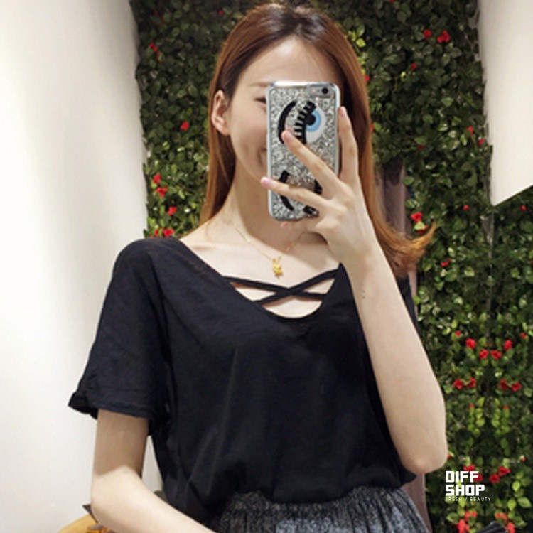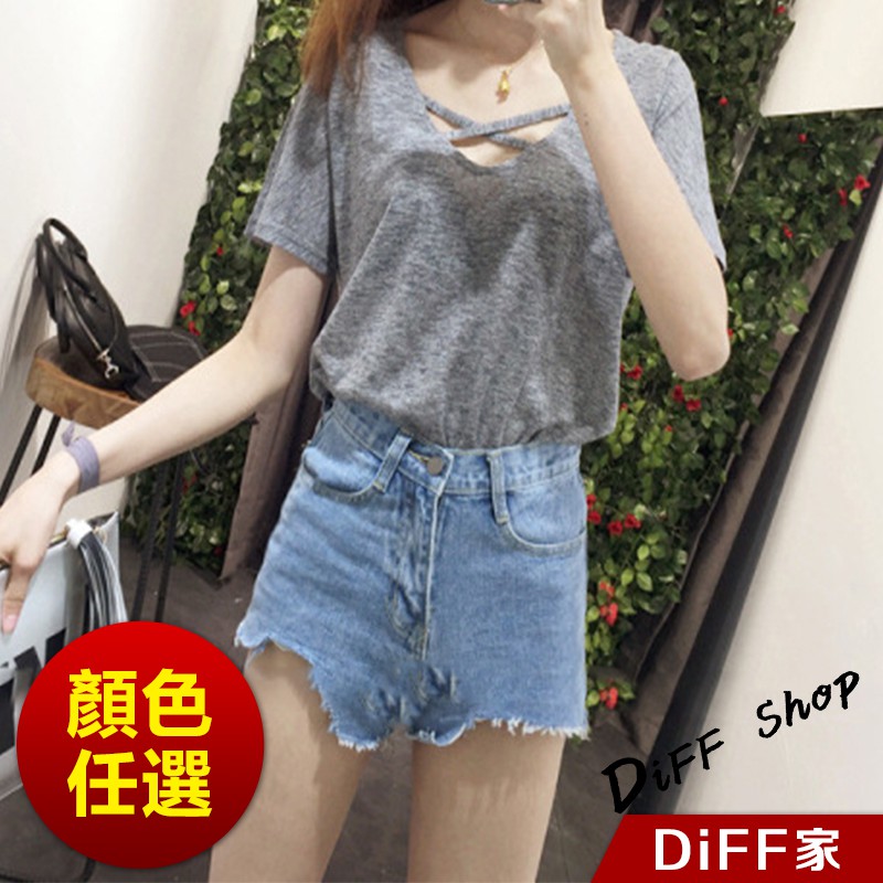 【DIFF】韓版前交叉短袖T恤 寬鬆前交叉設計 短袖上衣 素T 上衣 素面 T恤 衣服【T100】