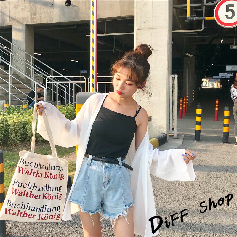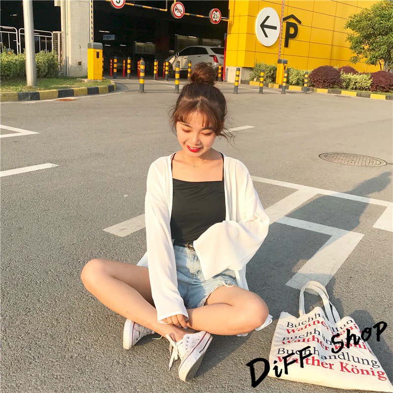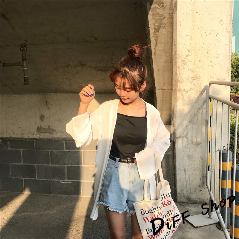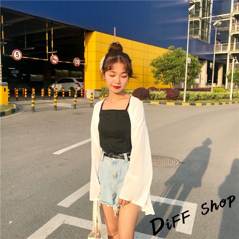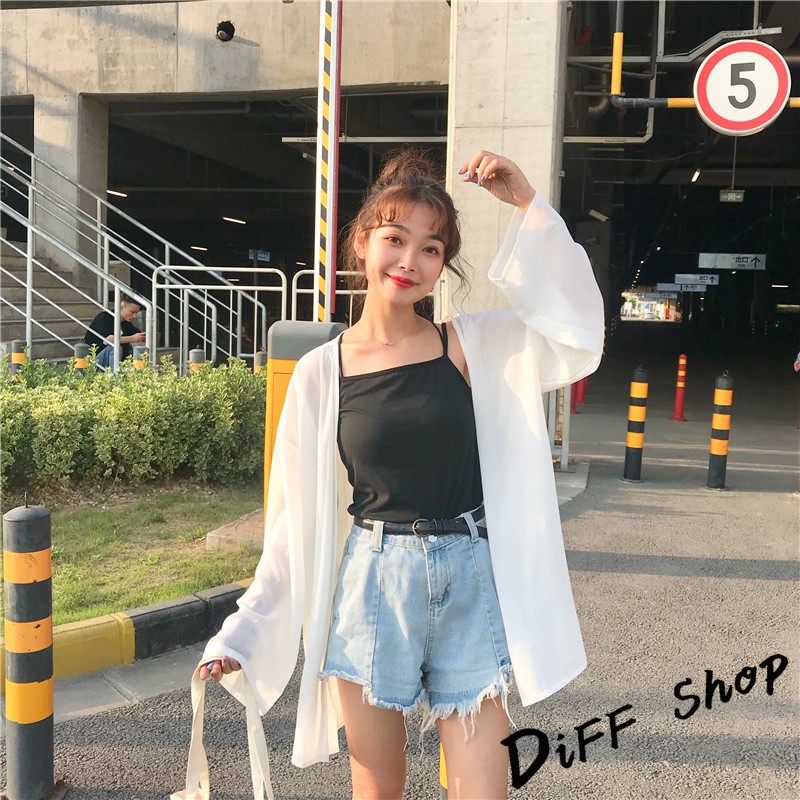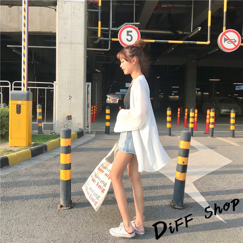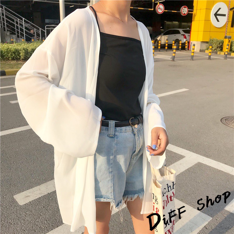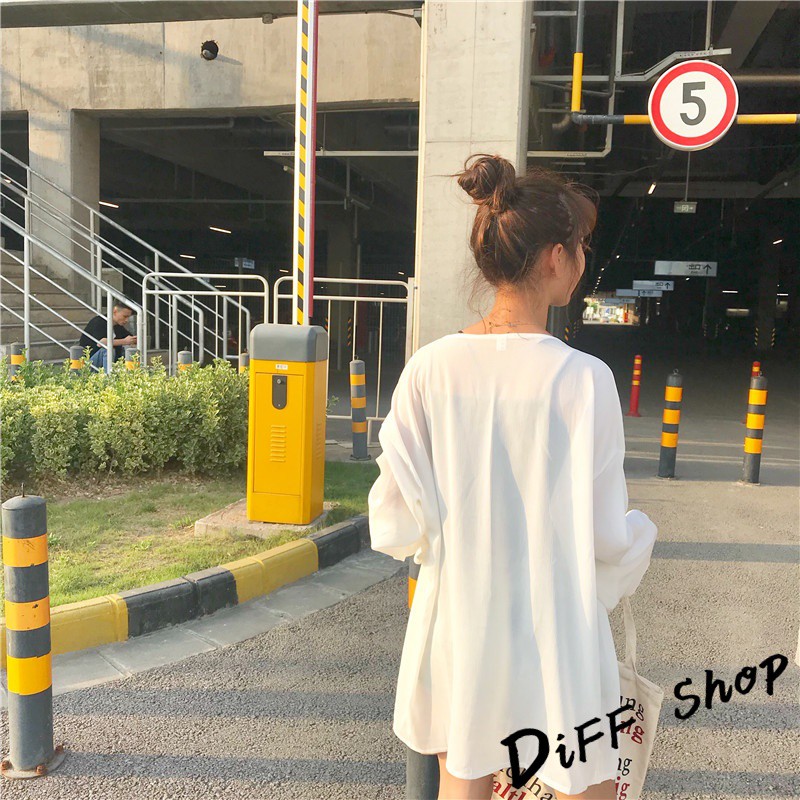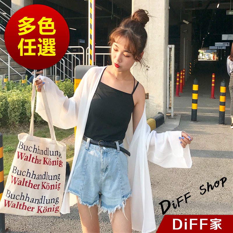 【DIFF】韓版白色薄款寬鬆雪紡罩衫 防曬外套 薄外套 長版外套 休閒外套【J56】