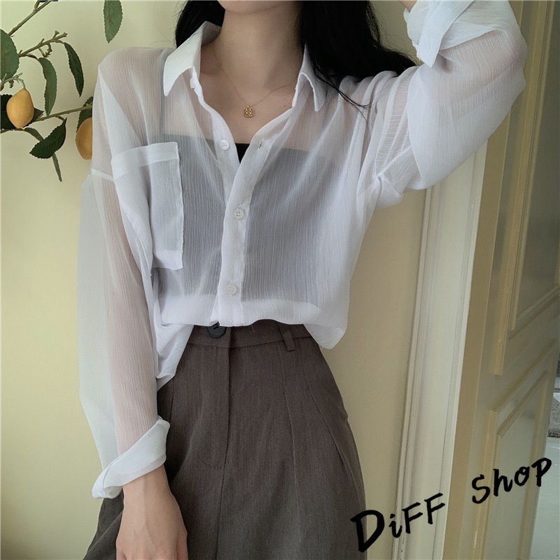 【DIFF】韓版雪紡透視防曬外套 襯衫 上衣 女裝 衣服 外套 薄外套 罩衫 防曬外套 長袖上衣 長版外套【J169】
