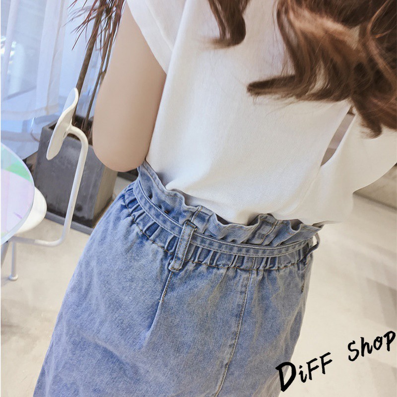 【DIFF】韓版寬鬆顯瘦高腰鬆緊牛仔褲 牛仔長褲 寬褲 褲子 長褲 休閒褲 女裝 工裝褲【P110】