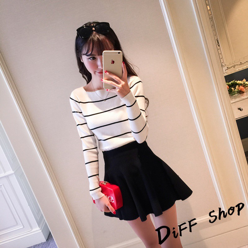 【DIFF】韓版彈性顯瘦條紋針織上衣 毛衣 長袖上衣 女裝 衣服 寬鬆上衣 顯瘦上衣 素色 冬裝 長袖t恤 【W06】