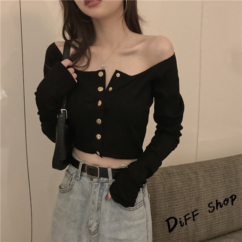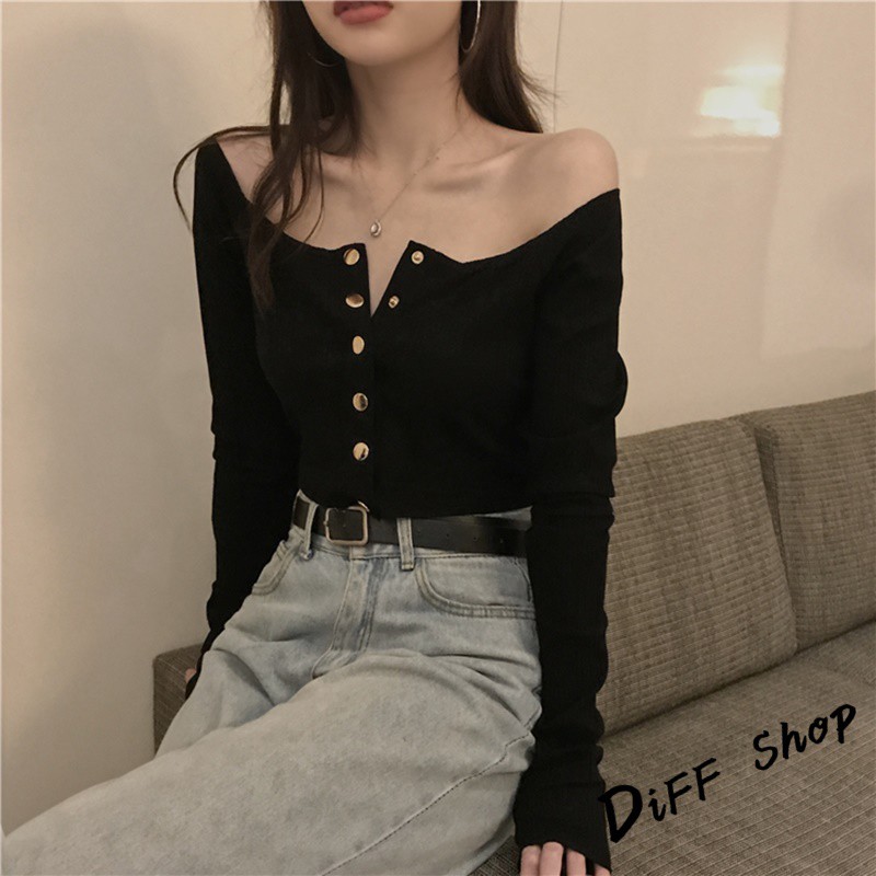 【DIFF】韓版性感露肩彈性修身顯瘦一字領長袖上衣 長袖t恤 女裝 衣服 寬鬆上衣 顯瘦上衣 素T 素色【W135】