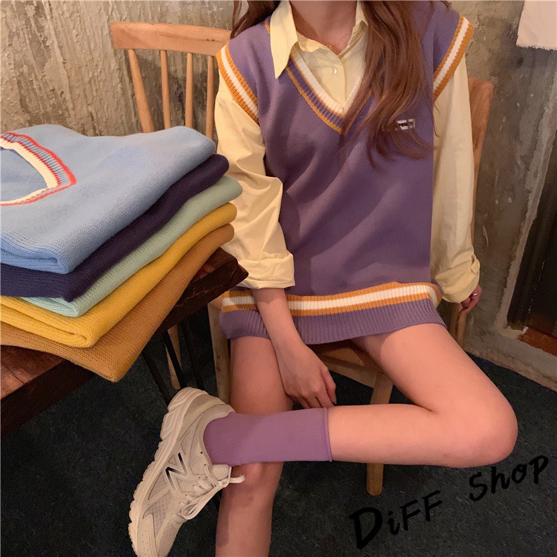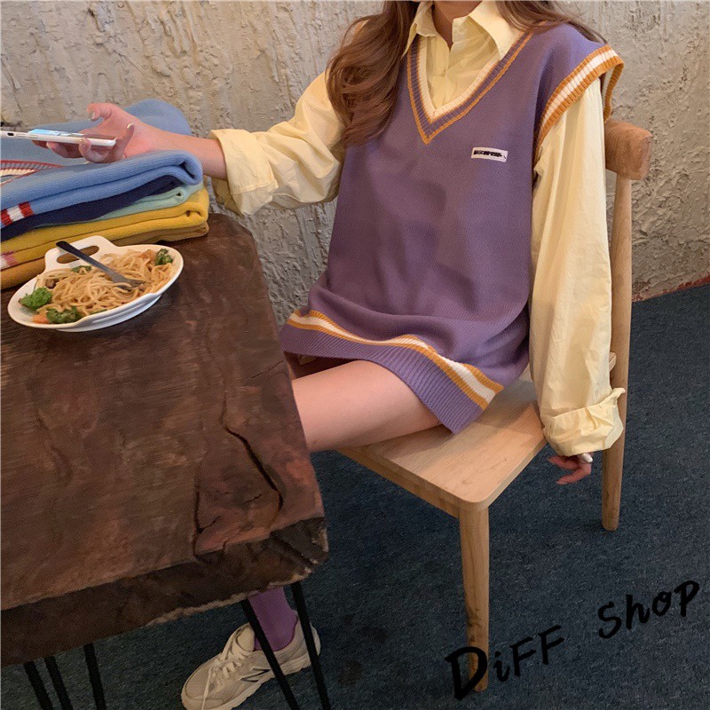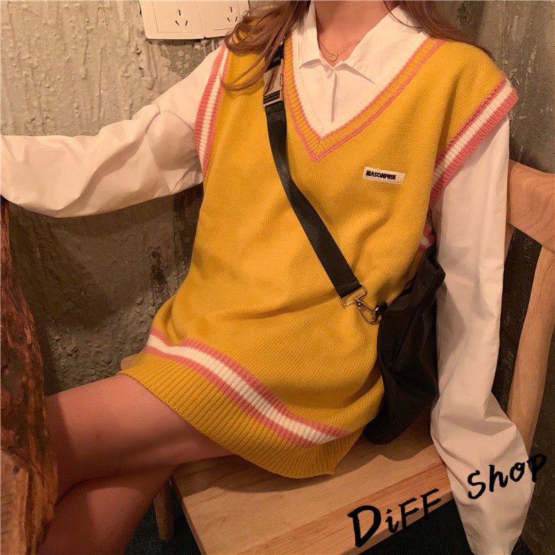 【DIFF】韓版學生森系針織背心 毛衣 針織上衣 長袖上衣 女裝 衣服 寬鬆上衣 顯瘦上衣【S96】